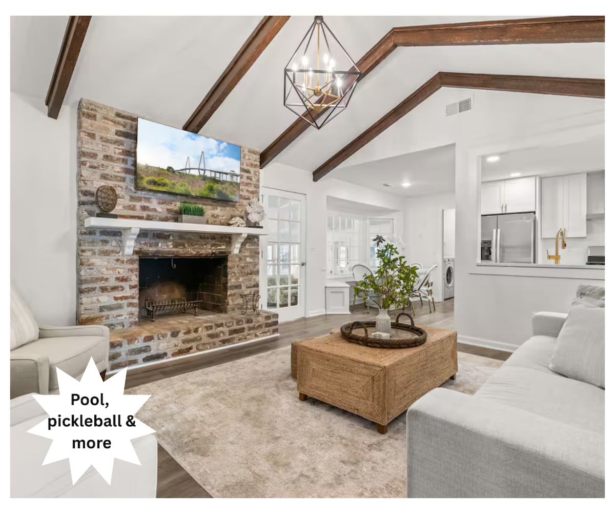 Welcome to Share-in Dipity, this stylish and relaxing home has everything you need to de-stress and enjoy Charleston. This 4/2.5 home features thoughtful design touches, an incredible outdoor area with a large patio and pool, close proximity to grocery stores/shopping, all set in the walkable and quiet neighborhood of Kings Grant. Though you may be tempted to turn your trip into a staycation, we are only 25 minutes from downtown and 35 minutes to beaches like Sullivans Island.