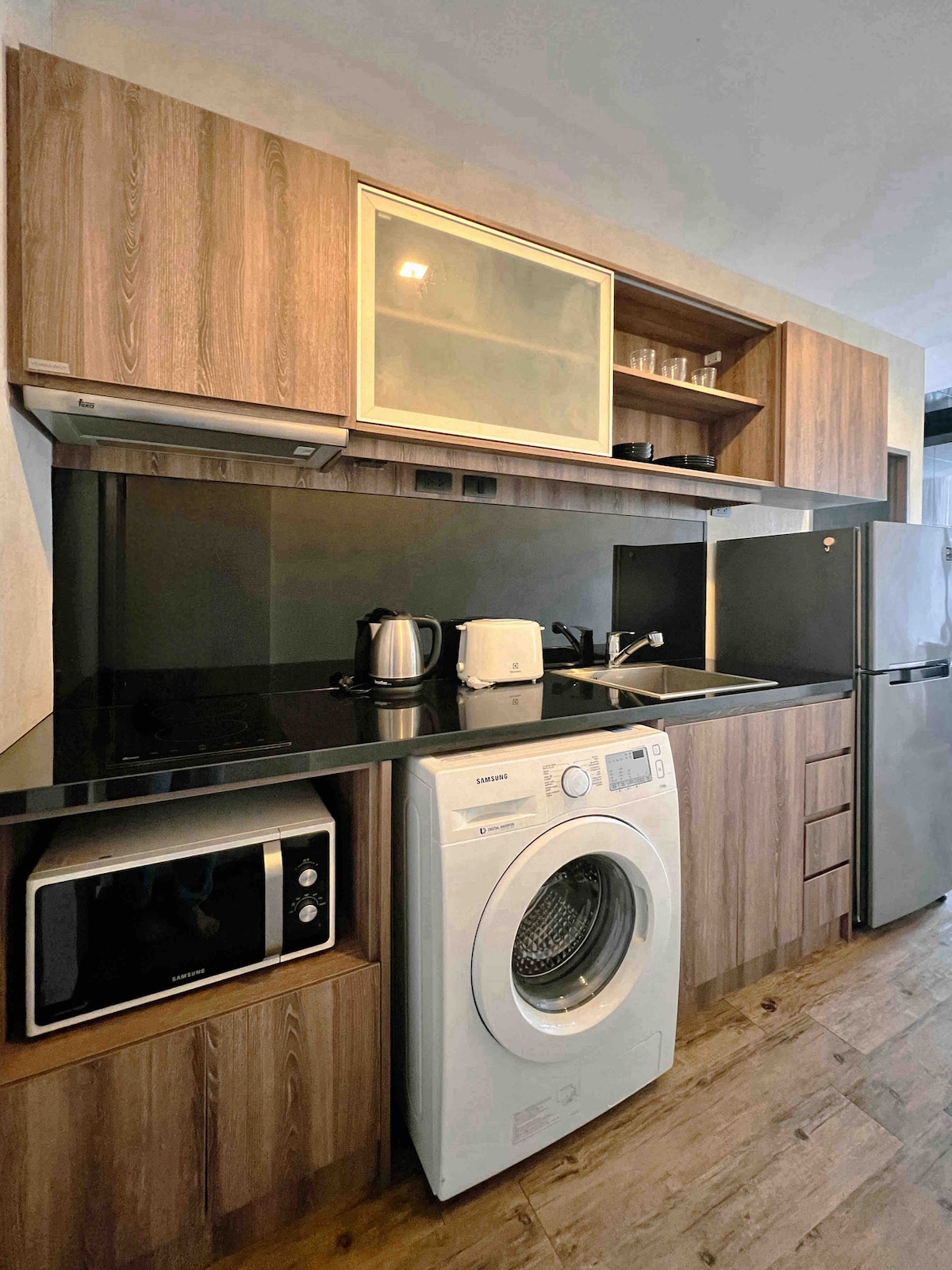 Welcome to your stylish home-away-from-home in the heart of Nimman. This rare, 41m² corner unit on the 6th floor offers spacious comfort. Breathe easy with our premium air purifier, ensuring a fresh airs through out your stay. Savor tranquil Doi Suthep Mountain ⛰ views as the sun sets. Evenings invite cozy movie nights on the HUGE 60" Smart TV with a mini theater. One Nimman and Maya Mall are minutes away on foot. Enjoy the pool and fitness facilities for a complete and relaxing stay.