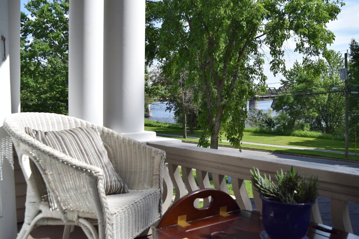 Warm and comfortable home away from home in front of the Wolastoq (Saint John) River. Entire private suite (only shared entrance lobby, see photo). Comfortable queen size bed and large living room with wide windows overlooking the river. 5-10 minutes away from restaurants, coffee shops, the Playhouse, the Convention Center, the Walking Bridge, Morell Park, Officer's Square and Downtown Fredericton by foot.