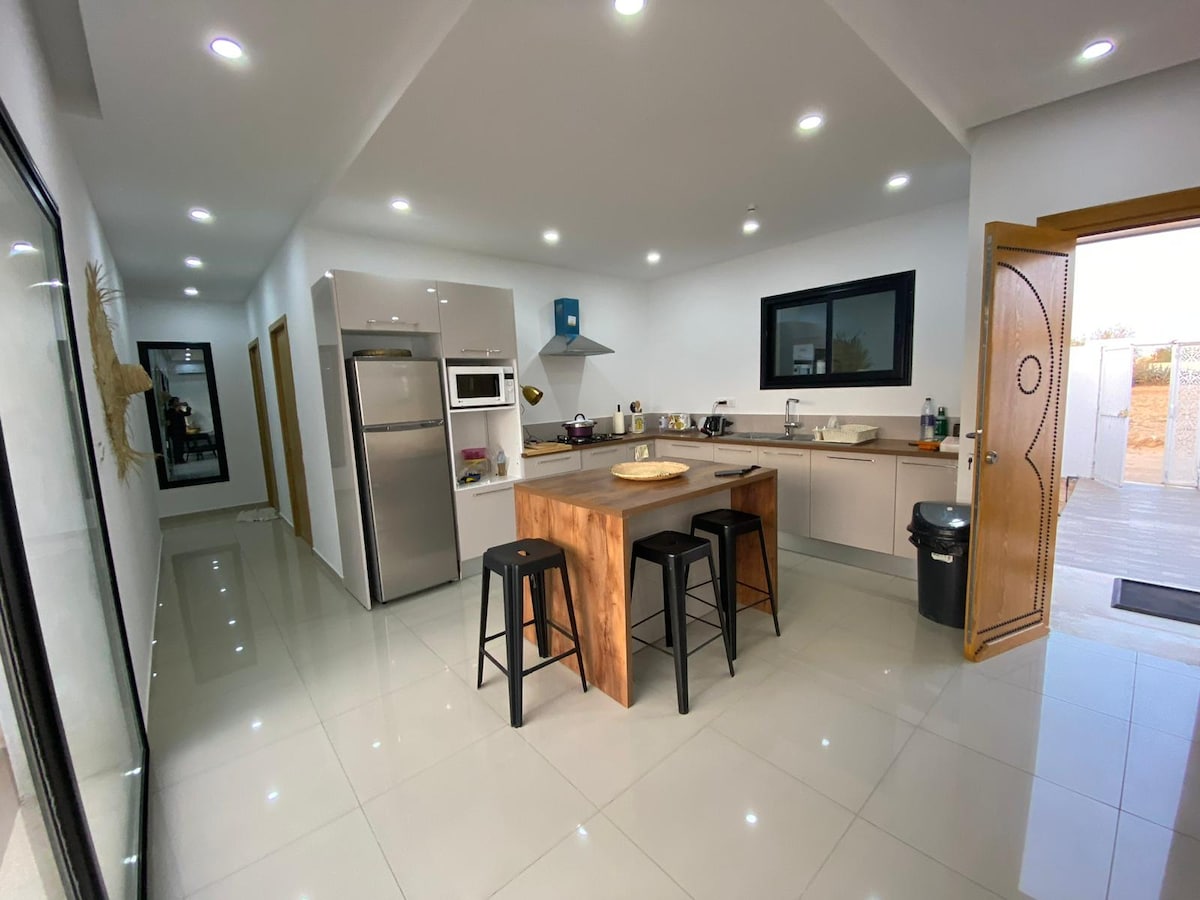 🌴 Velkommen til Villa Eden – din rolige pause i solfylte Djerba ✨ Områder • 190 m² moderne og raffinert komfort. • tre store suiter med førsteklasses sengetøy • 3 bad 🌿 Hagen og bassenget • sikkert privat basseng • Terrasse med utendørs lounge og dekkstoler • grillområde for hyggelige måltider 🏡 Fasiliteter. • fullt utstyrt kjøkken (ovn, mikrobølgeovn) • Aircondition i alle rom • Trådløst nettverk med høy hastighet • vaskemaskin