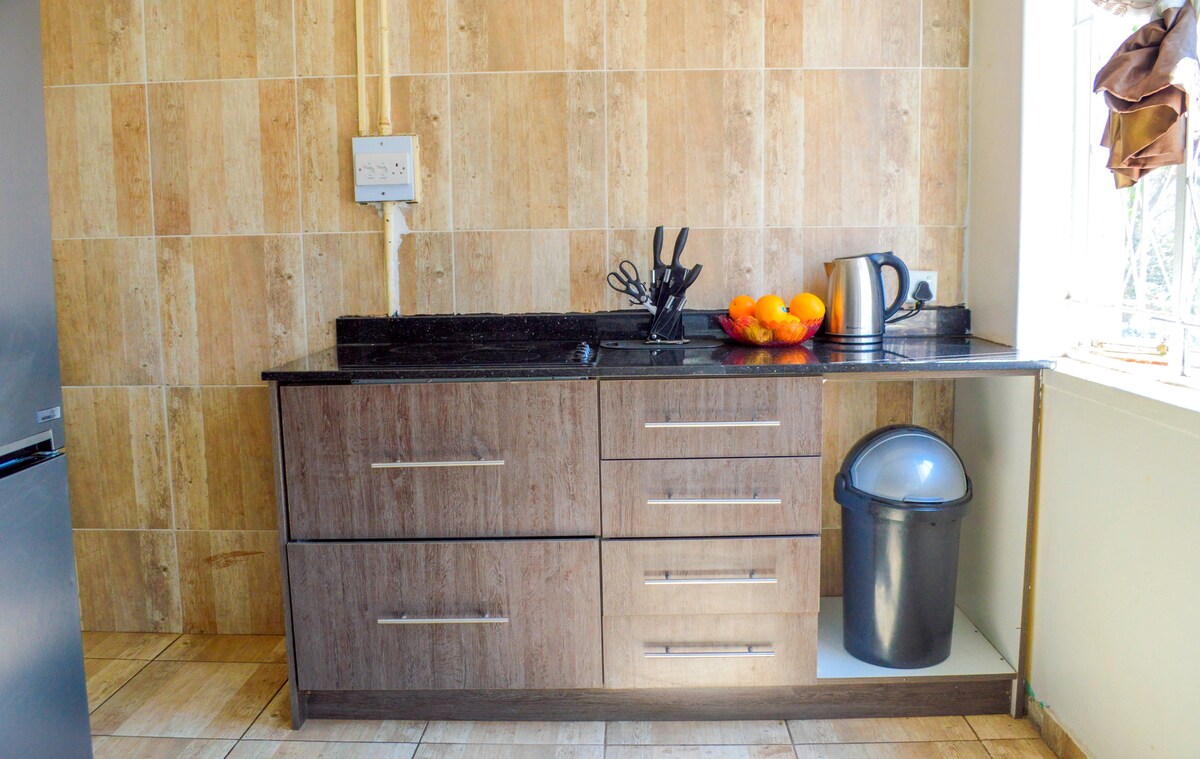Denne leiligheten ligger i første etasje. Har badekar, utmerket kaldt og varmtvannstrykk. Beliggende i kanten av Avenues-området i nærheten av byen, en 15 minutters kjøretur fra flyplassen. Det er et supermarked i nærheten av kvartalet. Gratis sikker parkering på stedet, pålitelig vannforsyning og strøm, DSTV Compact og gratis wifi. Desinfisert mellom gjestene og gjestene.