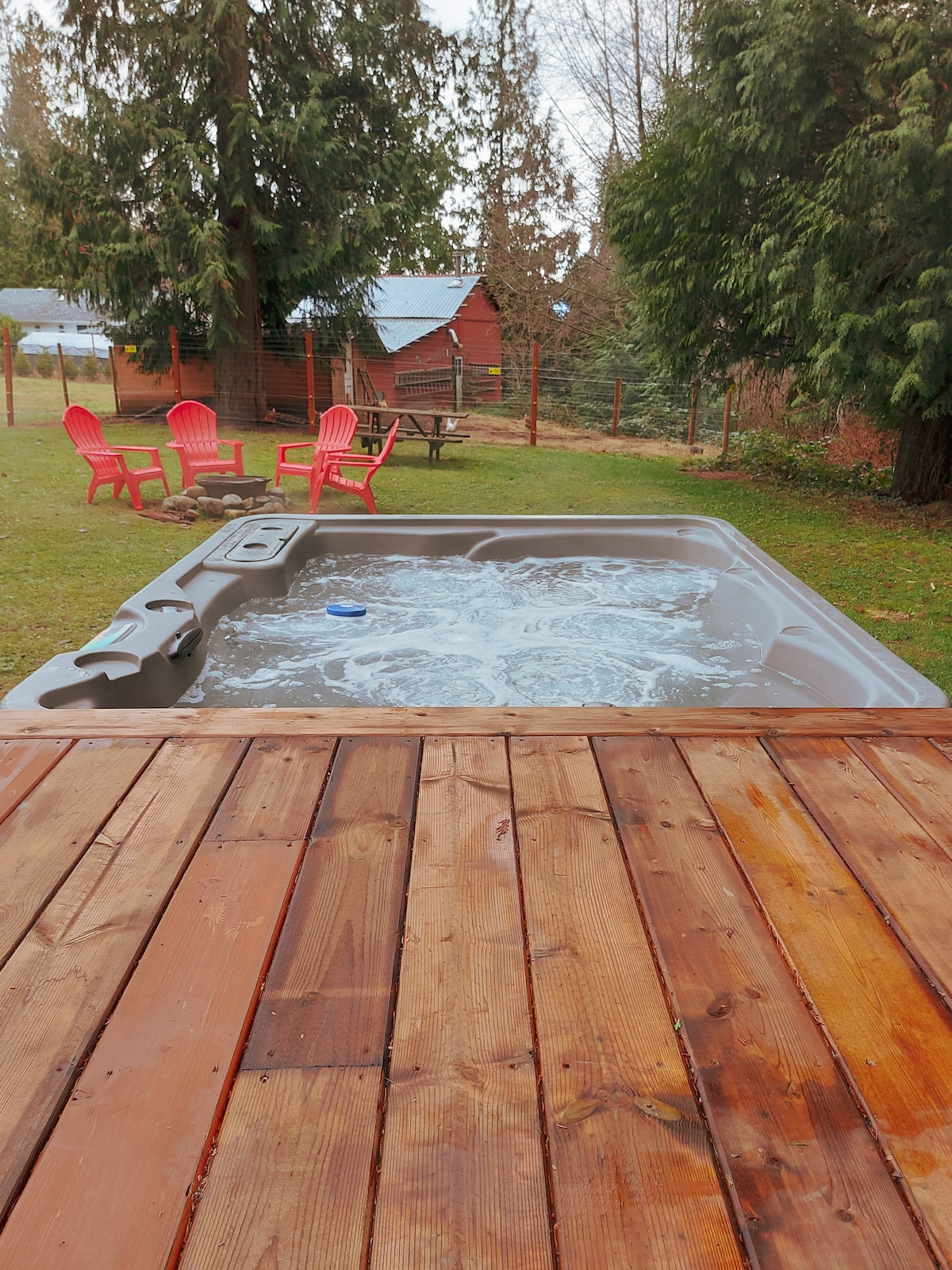 *BADESTAMP* Denne bnb-en ligger på bakre hjørne av vår 2,5 hektar store eiendom og har et fugleperspektiv av hønsehuset vårt (ikke bekymre deg, ingen gale haner, bare høns). Eiendommen vår ligger bare fem minutters spasertur til Frolander Bay Beach og ti minutter med bil til fergeterminalen Saltery Bay. Denne bnb-en består av tre hytter - hoved, bad og fleksibelt rom. Finn mer informasjon om hver hytte nedenfor.