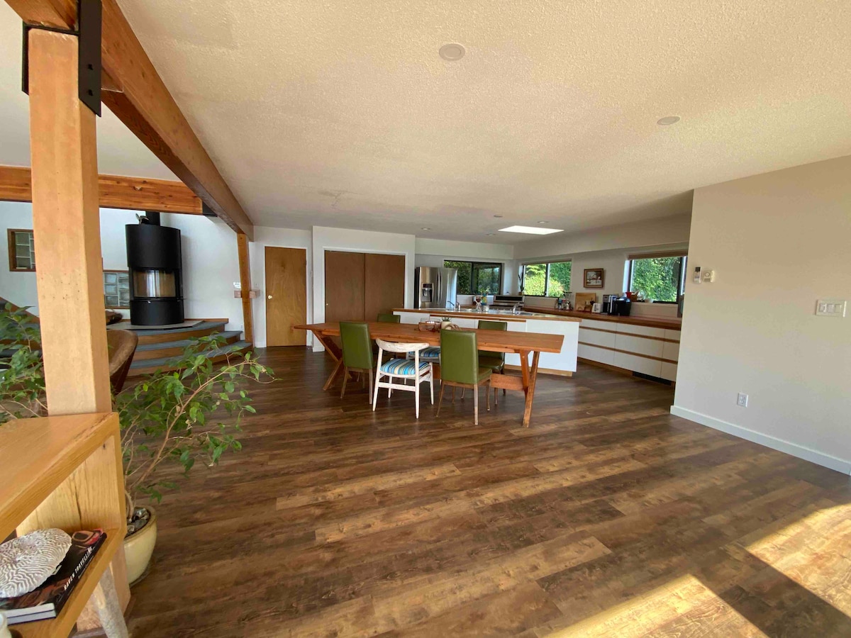 Attention nature lovers. This 385 square foot roof top suite is like living on Cloud 9. It is set among the fir and cedar trees in Bargain Harbour a stones throw from the ocean. The deck is over 2000 sq. ft. and set up for outdoor living including a hot tub and outdoor kitchen and a dart board for fun. Stay a couple nights or more and enjoy the king bed, mini kitchen and a shower built for 2 with a view to Vancouver Island.