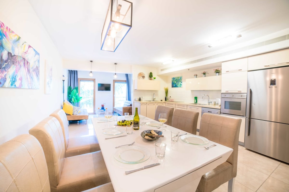 Nyt et stilig og sentralt hjem. Stille leilighet med alle fasiliteter. Nyt balkongen, vakthold 24/24 og den innbydende inngangspartiet. Leiligheten er utstyrt med plasma-TV, smart-TV, Nespresso-kaffemaskin, vaskemaskin, tørketrommel, oppvaskmaskin og alt du trenger for et godt opphold. Praktisk plassert bare ti minutters gange fra gamlebyen og noen få meter fra ben yehuda.
