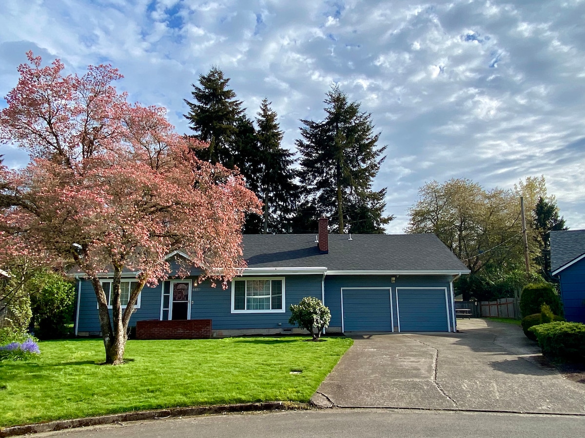 Rolig AirBnB i det ettertraktede N. Gilham-nabolaget i Eugene. Nærhet til I-5, RiverBend sykehus, og populær shopping og middag på Oakway Center. Stille og trygt nabolag, kjæledyrvennlig med fullt inngjerdet hage, uteservering og grill. Kort spasertur til Creekside Park. Dette koselige hjemmet med tre soverom er sjarmerende og sofistikert. Soveplass til seks komfortabelt og tilbyr kabel-TV og internett med høy hastighet. Innredet med naturlige elementer og en bohemsk stil, slik at gjestene kan slappe av.