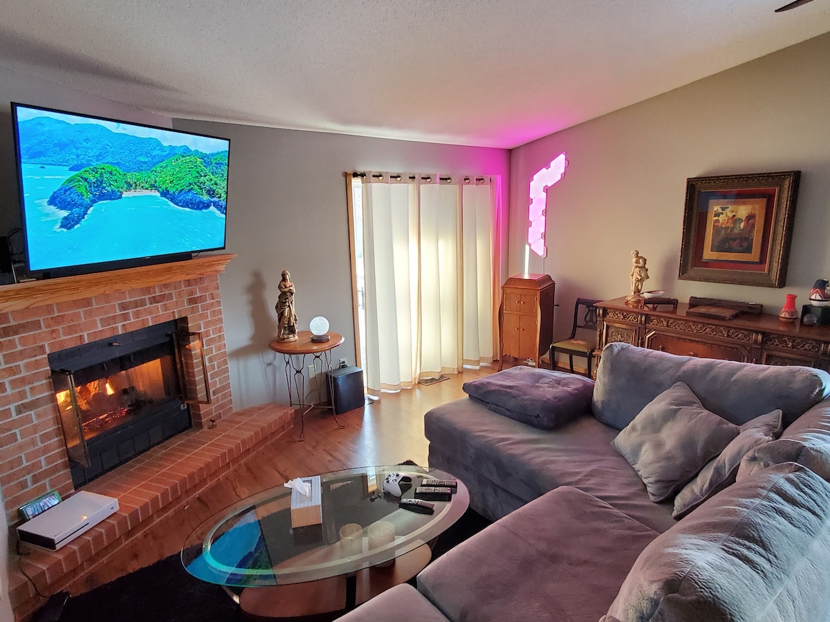Koselig, ren og elegant leilighet ned en trapp i nedre nivå av triplex i nærheten av Augustana University, University of Sioux Falls, North American Seminary, Sanford & Avera Hospitals og Midco Aquatics Center. Sentralt plassert i nærheten av sentrum og en enkel kjøretur til Empire Mall og Great Plains Zoo. Elektrisk peis. Tilgang til terrasse med bistrobelysning og bålplass i bakgården. Rent og trygt nabolag. Tilgang til vaskerom i samme etasje. Trådløst nettverk og ChromeCast-strømming. Gateparkering er tilgjengelig.