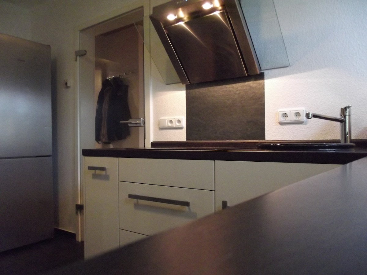 60 m² panoramaleilighet – for opptil fire gjester • kingsize-seng, sovesofa, sammenleggbar seng (på forespørsel), barneseng • fullt utstyrt kjøkken: komfyr, stekeovn, vannkoker, kaffemaskin, oppvaskmaskin, kjøleskap, TV • Sengetøy, håndklær av høy kvalitet, kaffe og te • Stor terrasse med solseng, utsikt mot naturen. God beliggenhet: • 5 minutter med bil / 30 minutters gange til Idstein sentrum • Turstiene starter ved døren. • 20 minutter til Frankfurt lufthavn og Wiesbaden • 2 km til motorvei • lekeplass og grillrestaurant i nærheten