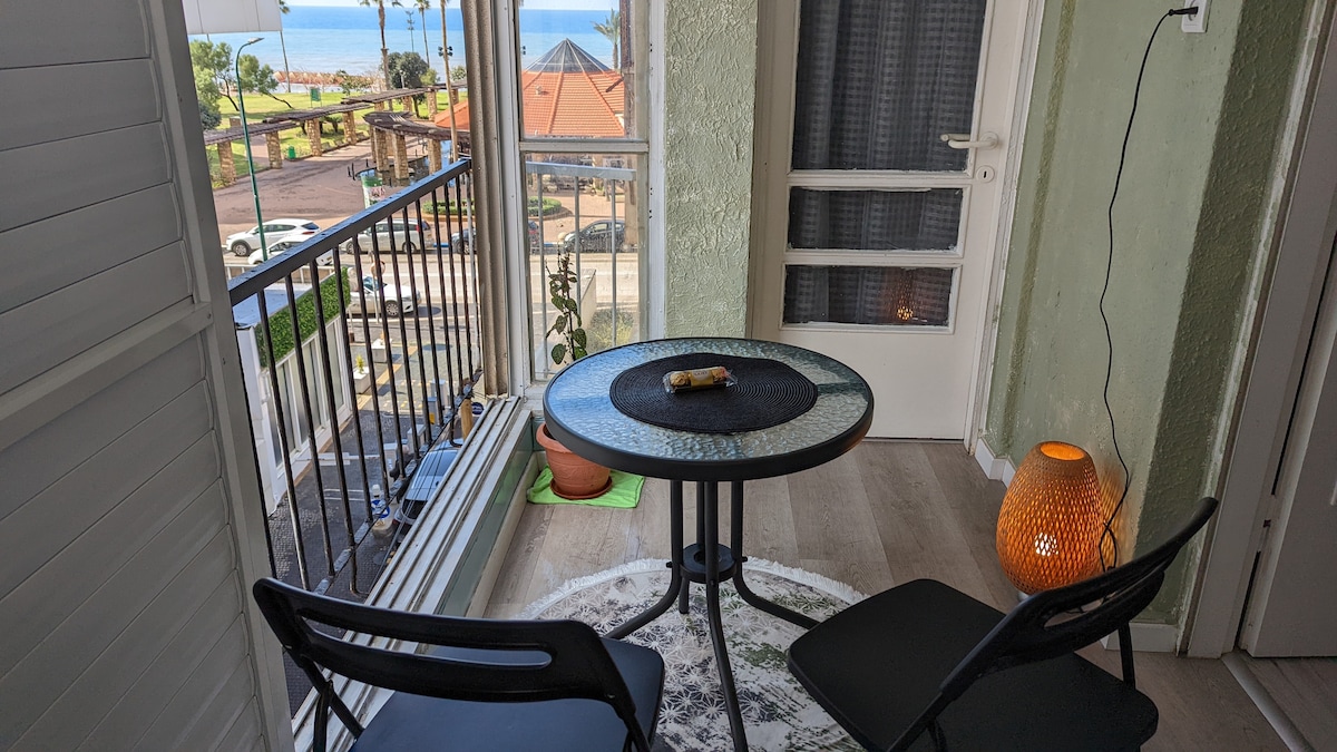 Dette spesielle stedet er i nærheten av alt, noe som gjør det enkelt å planlegge besøket ditt. strandpromenaden,barer,resturanter,spa,leiebil,busser,markeder og sjøkanten ligger 1-5 minutters gange unna. Leiligheten ligger i den første gaten til sjøen, med sjøutsikt fra kjøkkenbordet og balkongen. Leiligheten har høyt tak, lav og høy belysning, slik at du kan skape din egen atmosfære, superkomfortabel sofa og seng. vær oppmerksom på Det er ingen heis! Ca. 40 trapper opp. יש תוספת מע''מ %18 snakk gjerne med oss