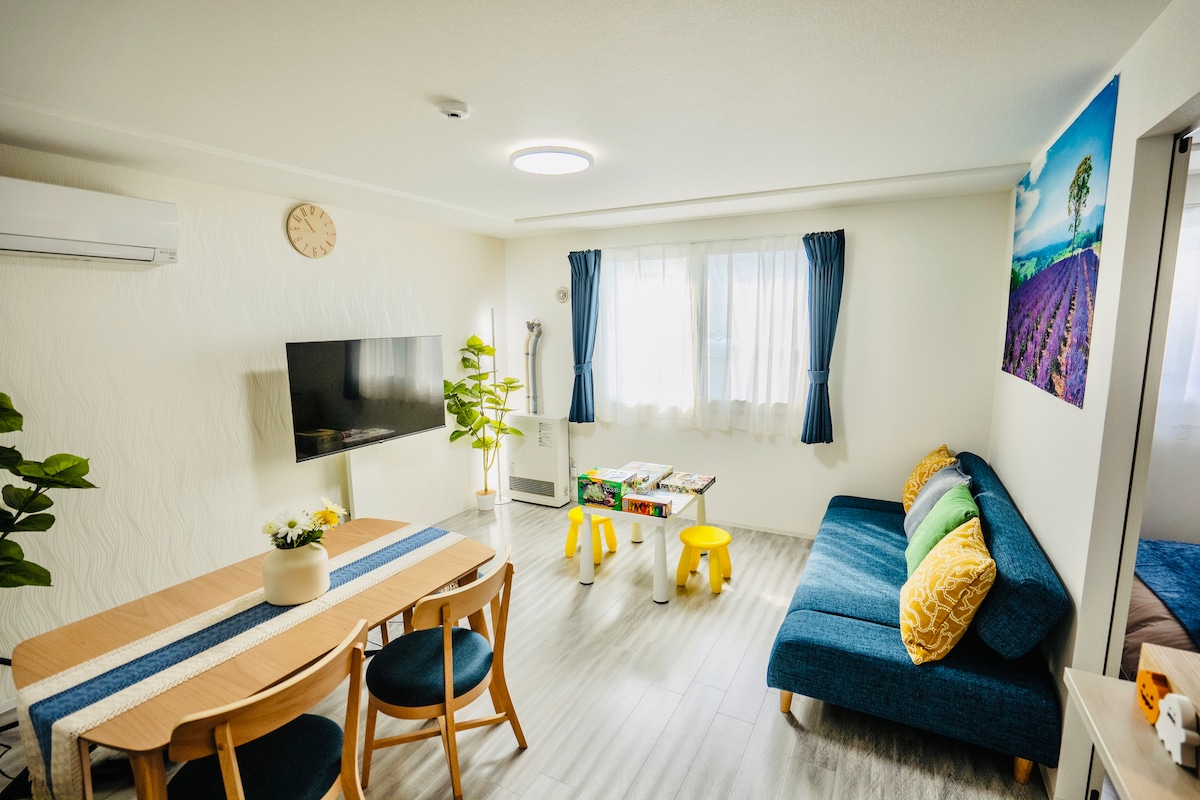 Velkommen til Urban Retreat Sapporo Kotoni! En moderne 2LDK, fire minutters gange fra JR Kotoni. Bare 6 minutter til Sapporo, 45 minutter direkte til New Chitose lufthavn, 27 minutter til Otaru, med tilgang til skianleggene Niseko og Kiroro. Lyst, nordisk interiør, plass til opptil fem personer – ideelt for familier, venner eller forretningsreisende. Fasiliteter: TV, raskt trådløst nettverk, A/C, vaskemaskin, fullt kjøkken. Butikker, restauranter, sykehus og kjøpesenter ligger alle i nærheten. Rolig, men praktisk beliggenhet. For opphold på over 30 netter er et separat langtidsutleiested tilgjengelig.