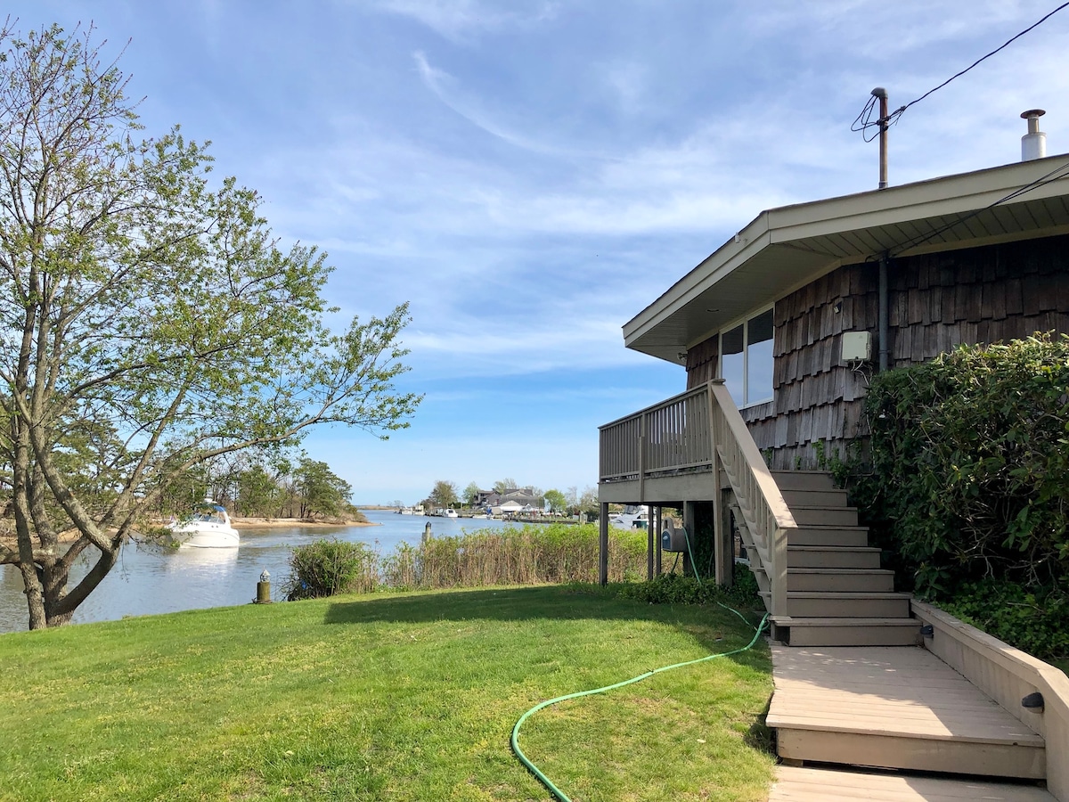Et unikt lite strandhus på sørkysten av Long Island med den vakreste utsikten. Huset ligger ved en kanal. Brygge er tilgjengelig! **Vi har padlebrett, surfebrett og kajakker for 3–2 personer på stedet som du kan bruke under oppholdet** Du kommer deg til Great South Bay ved å padle til munningen av kanalen. Og du kan komme deg til Fire Island ved å leie en vanntaxi for å hente deg! Det åttekantede huset ble bygget på 1970-tallet. Det har nylig blitt oppdatert med helt nye senger og sengetøy.