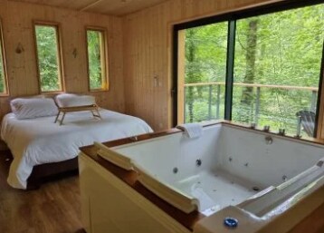 På jakt etter en tilbakevending til naturen, så la deg forføre av det enkle konseptet til disse varme små trehyttene i form av en halv stamme, som uunngåelig oppfyller ønsket om en miljøendring. I hjertet av en familieeiendom som er under renovering, vil du ha en komfortabel Pod kalt Breta 1. Denne uvanlige boligen på 18m2 tilbyr et varmt rom med dobbeltseng som åpner seg til et bad, et separat toalett. Denne Pod-en har en opplyst og møblert terrasse.