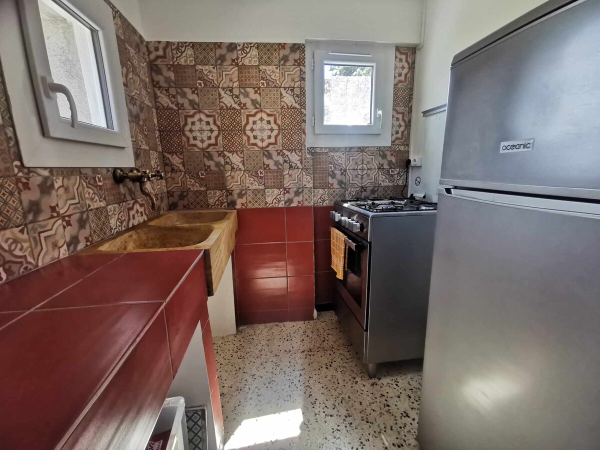 Et sted hvor ro og fred råder, for et minneverdig opphold. Ved ankomst omfavner atmosfæren av blå sedertre deg: Et koselig interiør, dekorert med omhu, hvor hver detalj er designet for å blande komfort og autentisitet. Denne hytta kombinerer gresk sjarm og et moderne preg, perfekt for en romantisk ferie eller et foryngende opphold. Du vil nyte roen på stedet, klimaet og tilgangen til utsiden med det private bassenget, perfekt for å slappe av i solen.
