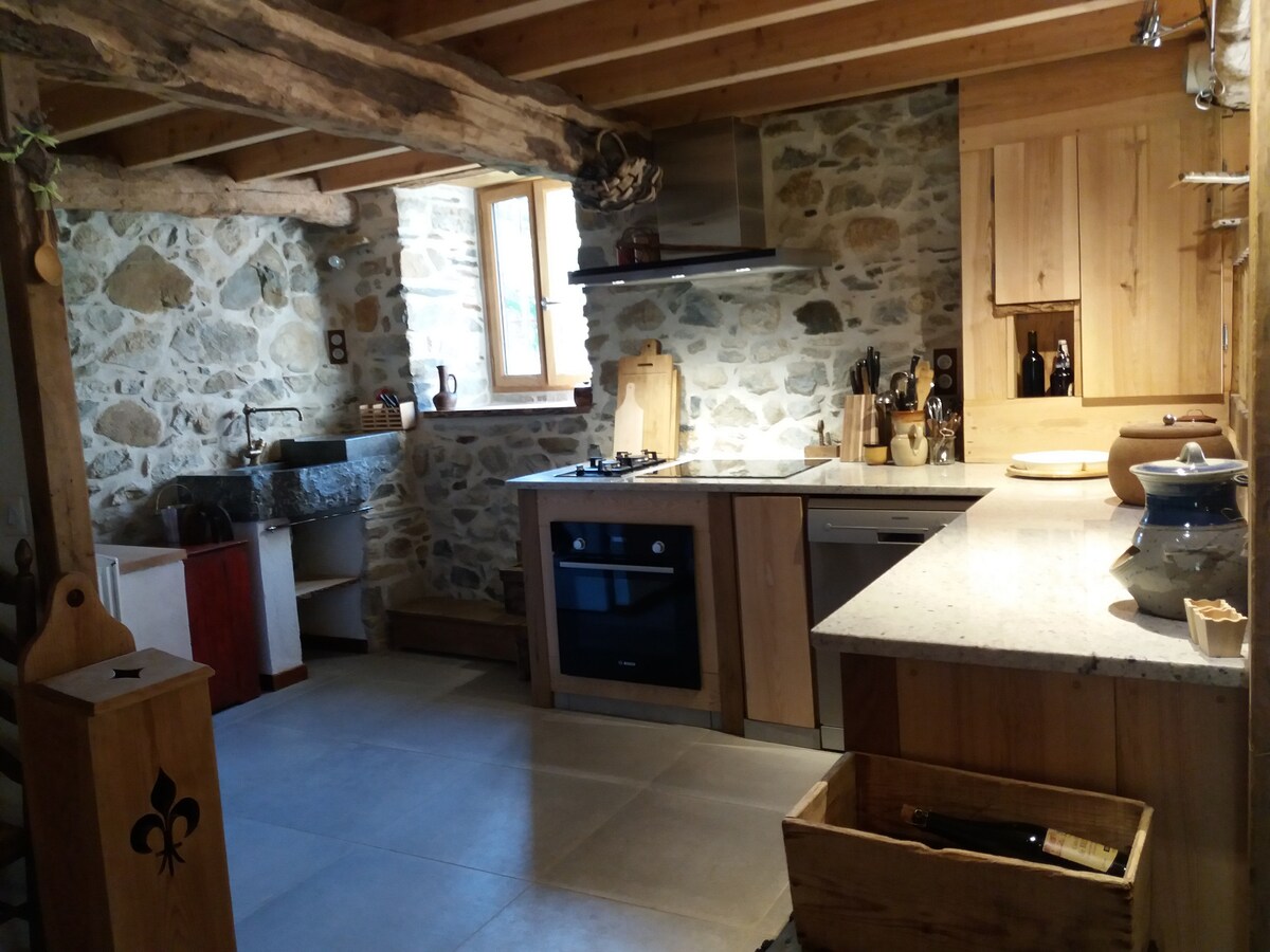 1 km fra Luchon, i hjertet av den lille pastorale landsbyen Montauban-de-Luchon, ligger en 76m2 stor låve renovert i "fjellånd" helt i tre, med en 35m2 stue åpen mot den hundreårige kastanjetreet og Superbagnères-fjellene. To soverom, et bad, et separat toalett, en privat hage, veldig komfortabel og full av sjarm for en flott ferie i fjellet i nærheten av skianleggene, den spanske grensen og de vakreste turene i Pyreneene.