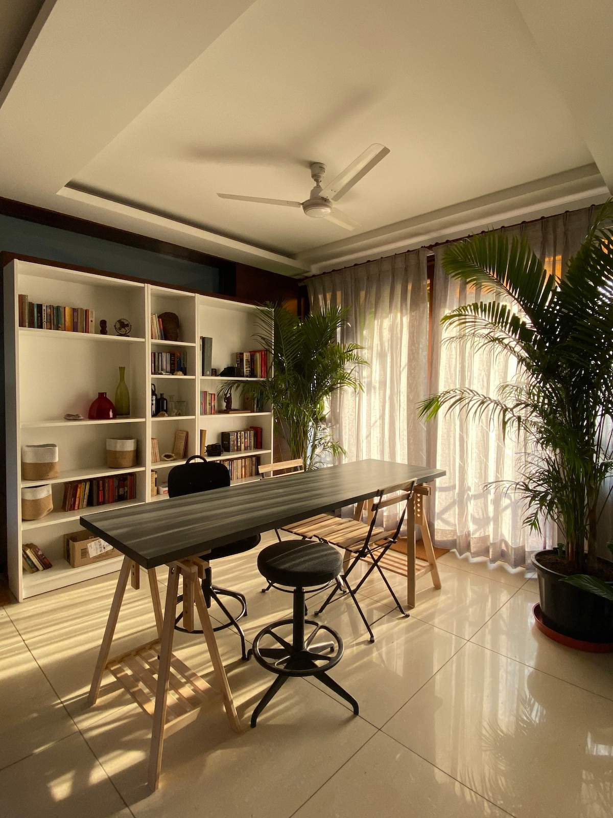 Dette er et veldig unikt, isolert sted designet for å skape en boopplevelse nær naturen. Et rom som ligger i en frittstående blokk i huset vårt, opp to etasjer ved hjelp av en spiraltrapp som forbinder taket vårt fra baksiden av huset. Jeg og min kone Kavita bor i hovedbygningen og har vært vertskap i to år. Vi er veldig ressurssterke par og er alltid her for å hjelpe gjestene. Stedet er superfredelig og har mye sollys og dør som kan gjøres om til et vindu for solnedgangen.
