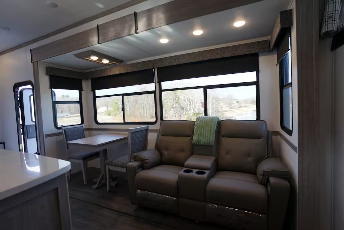 Escape to the serene beauty of Cherokee Lake with a stay in our luxurious 2024 Dutchmen RV Yukon. This spacious RV offers stunning views and private boat ramp access. Sleeps up to 6 guests with a King Bed Primary Bedroom, King Size Bed and Twin Size Loft Beds. Enjoy the large 50” pop-up TV next to the kitchen or in the separate TV room with a tri-fold sofa. Has largest oven in the industry, full-size refrigerator, and pantry. Two full bathrooms ensure privacy. Lakefront Views