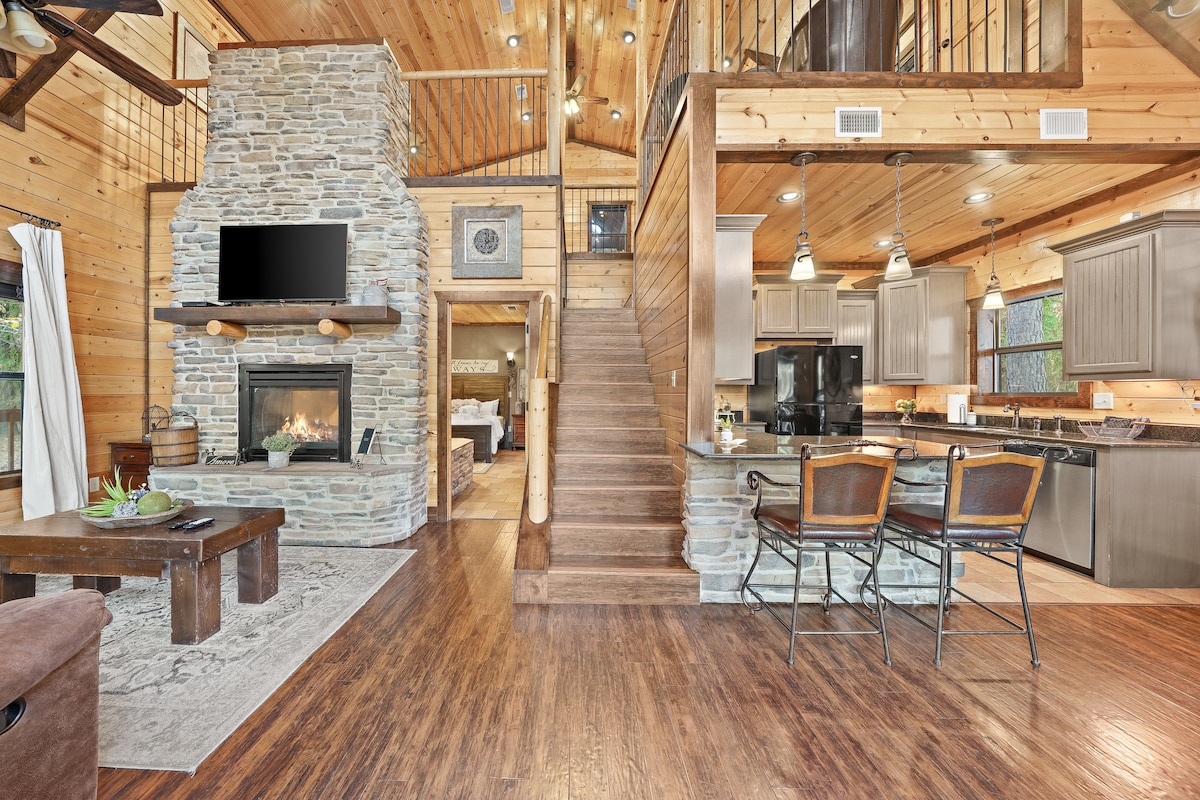 Tuklo Tiak, Choctaw for «Two Pines», er en luksuriøs hytte som ligger blant furutrær, og tilbyr den perfekte ferien for par. Med peiser inne og ute, boblebad, badstue og bålpanne gir den avslapning og tilknytning. Den ligger mellom Broken Bow og Hochatown, og tilbyr privatliv og ro, men er likevel bare noen minutter fra spisesteder, shopping og attraksjoner. Opplev en fredelig flukt du vil besøke igjen, med hver detalj designet for komfort og ro – perfekt for å skape varige minner.