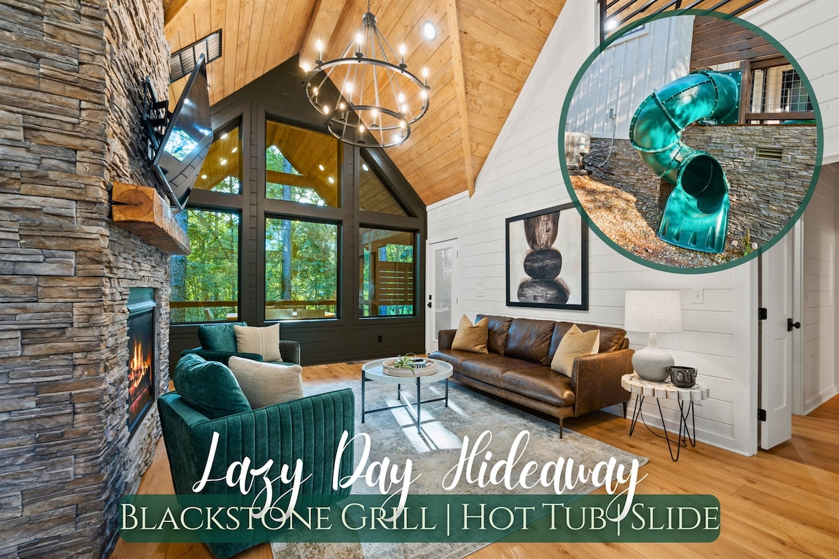 Et koselig feriested med et luksuriøst soverom med kingsize-seng, gourmetkjøkken og et rolig uteområde hvor du kan slappe av ved bålet eller boblebadet. ✨ Spa-lignende bad på rommet 🛁 Avslappende boblebad 🔥 Utendørs peis og bålplass 🎶 Crosley-platespiller med vintagealbum. 🐾 Kjæledyrvennlige overnattingssteder ✭ «… gledet meg til en avslappende helg på jakt etter klarhet, og dette var det perfekte stedet å få akkurat det jeg var på jakt etter.»