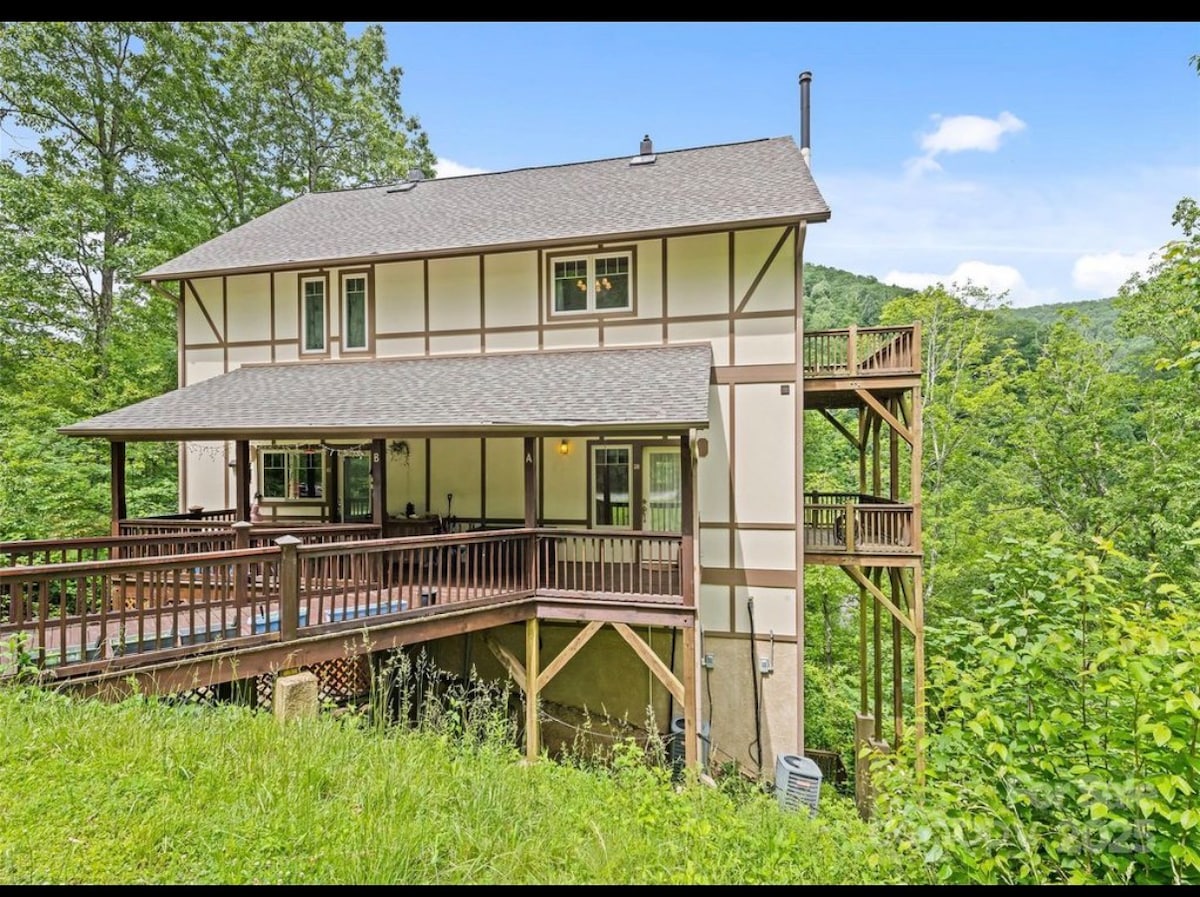 Stay at our private guest tower with 2 bedrooms & 2 baths with access through the front deck. The guest tower can sleep up to 6 , there is a pull-out queen size sofa bed in the top living room, the master bed is a full size bed. The current Airbnb description list does not have a full size bed listed as a choice. Nearby attractions: less than a mile away to the cataloochee-ski-area, 30 minute drive to Asheville, Jonathan Creek trout fishing down the hill, close to the blue ridge parkway.