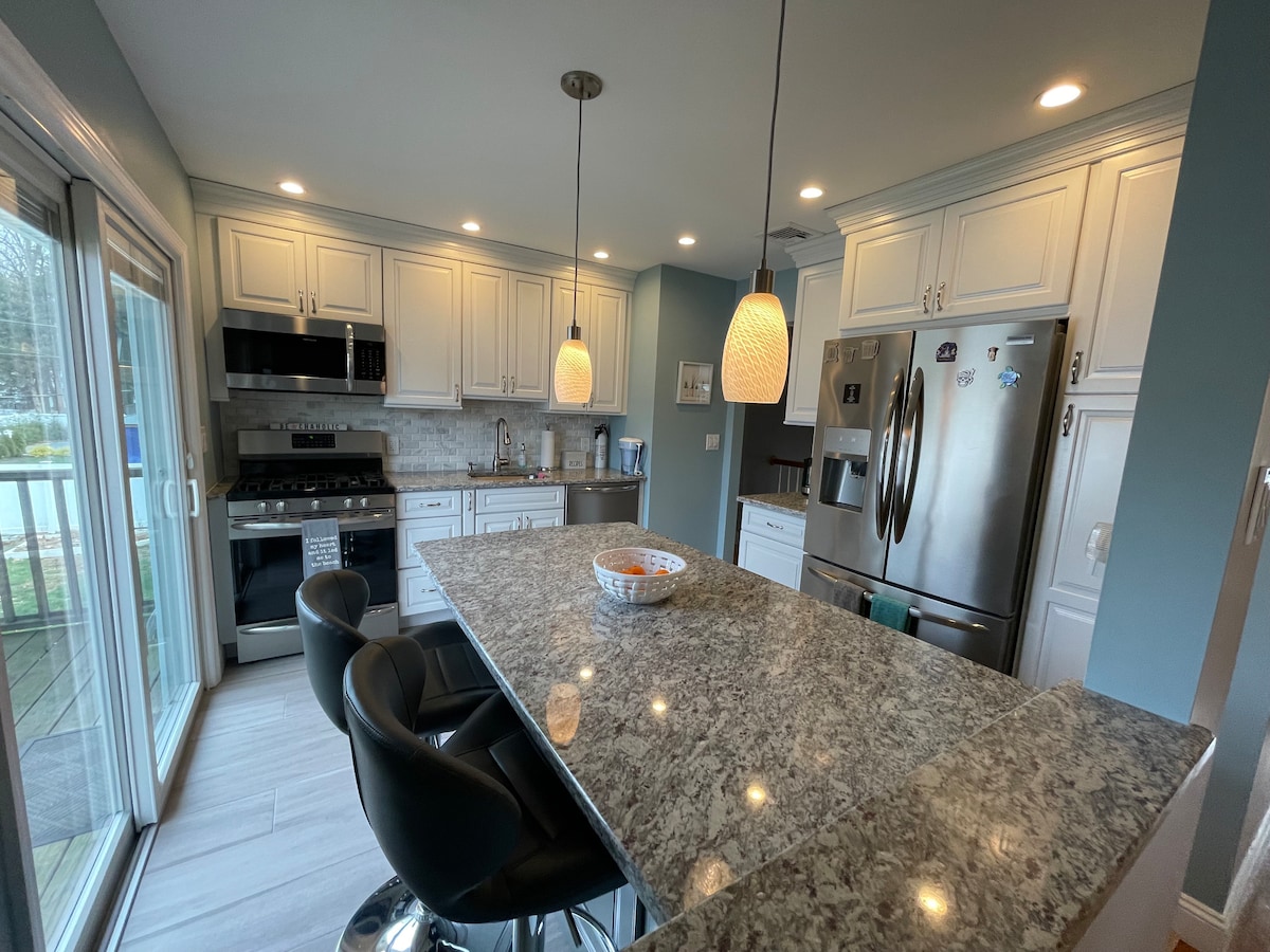 Jeg har et profesjonelt rengjøringsfirma som kommer mellom alle gjestene. Eiendommen er det eneste huset i gaten som støter opp til flere hektar skogkledd parkområde. Få følelsen av natur/privatliv som ligner på å være i staten New York, men sentralt plassert til Sunken Meadow Parkway, Northern State, LIE. Også i nærheten av matbutikker og andre nødvendigheter. 400 MBPS internettforbindelse for de som trenger en pålitelig internettforbindelse for å jobbe! Stuen har en uttrekkbar queen sofa hvis en tredje seng er nødvendig.