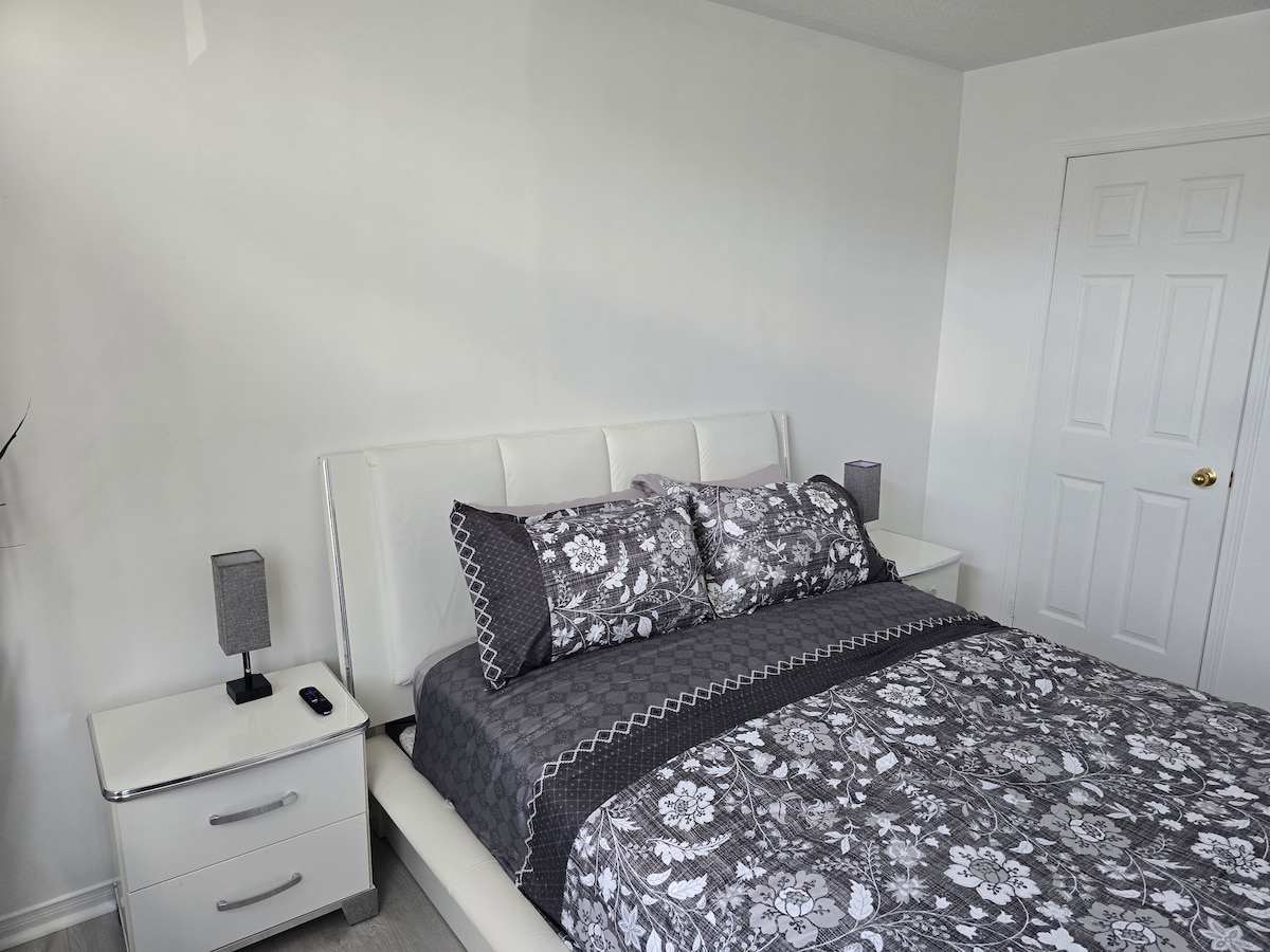 Velkommen til ditt andre hjem! Denne rene, koselige, åpne leiligheten er det perfekte stedet å slappe av, enten du reiser, jobber eller slapper av. Nyt en privat walk-out-suite med en komfortabel queen-size seng, romslig stue, 50 tommers TV, gratis trådløst nettverk, fullt utstyrt kjøkken, fullt bad med badekar, lesehjørne, privat veranda, bakgård og parkering. Plassert i et rolig nabolag, er du bare minutter fra Mississauga, Toronto og hele GTA. Enkel tilgang til kjøpesentre, transport, motorveier og parker