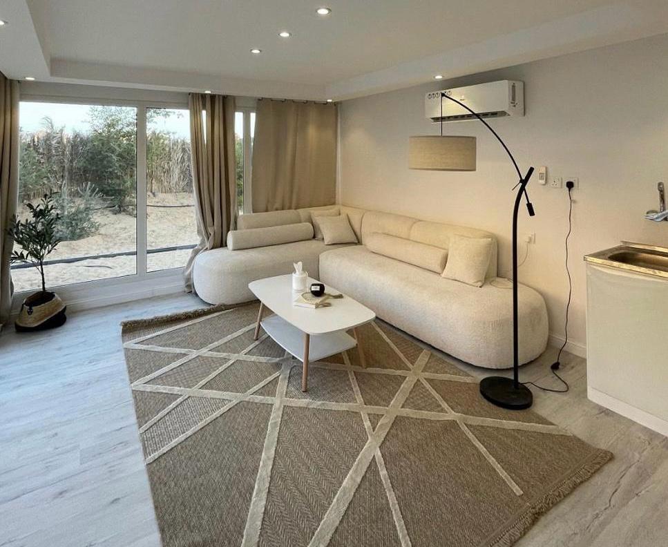 A fully funished serviced apartment with two bedrooms, a living room, and a full kitchen! We offer free house-keeping, wifi, Tv, grocery delivery and more. feel like home while you're in Al-Ula.