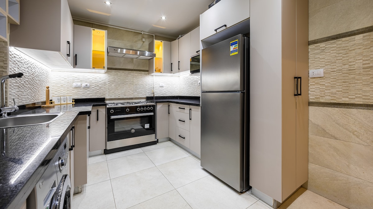 Velkommen til ditt fredelige tilfluktssted i det travle hjertet av Degla Maadi! Denne elegante leiligheten ligger i en førsteklasses beliggenhet og tilbyr et rolig tilfluktssted for både familier og reisende. Gå inn i moderne eleganse med vårt stilig møblerte rom, som kan skryte av to koselige soverom utsmykket med mykt sengetøy for en avslappende natts søvn. Det fullt utstyrte kjøkkenet lokker til kulinariske opplevelser, mens den komfortable stuen inviterer til avslapning etter en dag med utforskning av Kairos pulserende gater.