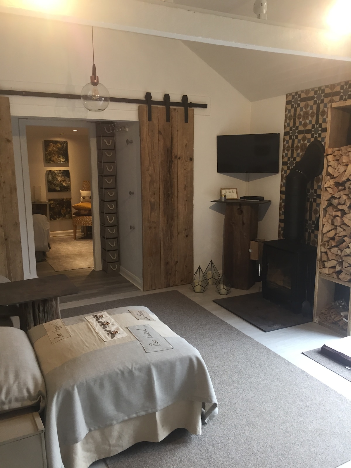 Nyt det sjarmerende, koselige interiøret på denne romantiske ferien. Åpne dørene til terrassen, og la lydene av naturen sveve gjennom hytta. Tenn opp grillen, nyt et godt måltid og tilbring deretter kvelden i boblebadet. Perfekt for alle som ønsker å komme seg vekk fra alt. Hytta tilbyr et romantisk gjemmested, med eksklusiv bruk av boblebadet og et lavt mezzanin-soveområde på en futonmadrass hvor du kan se på stjernene i sengen mens du lytter til de lokale uglene.