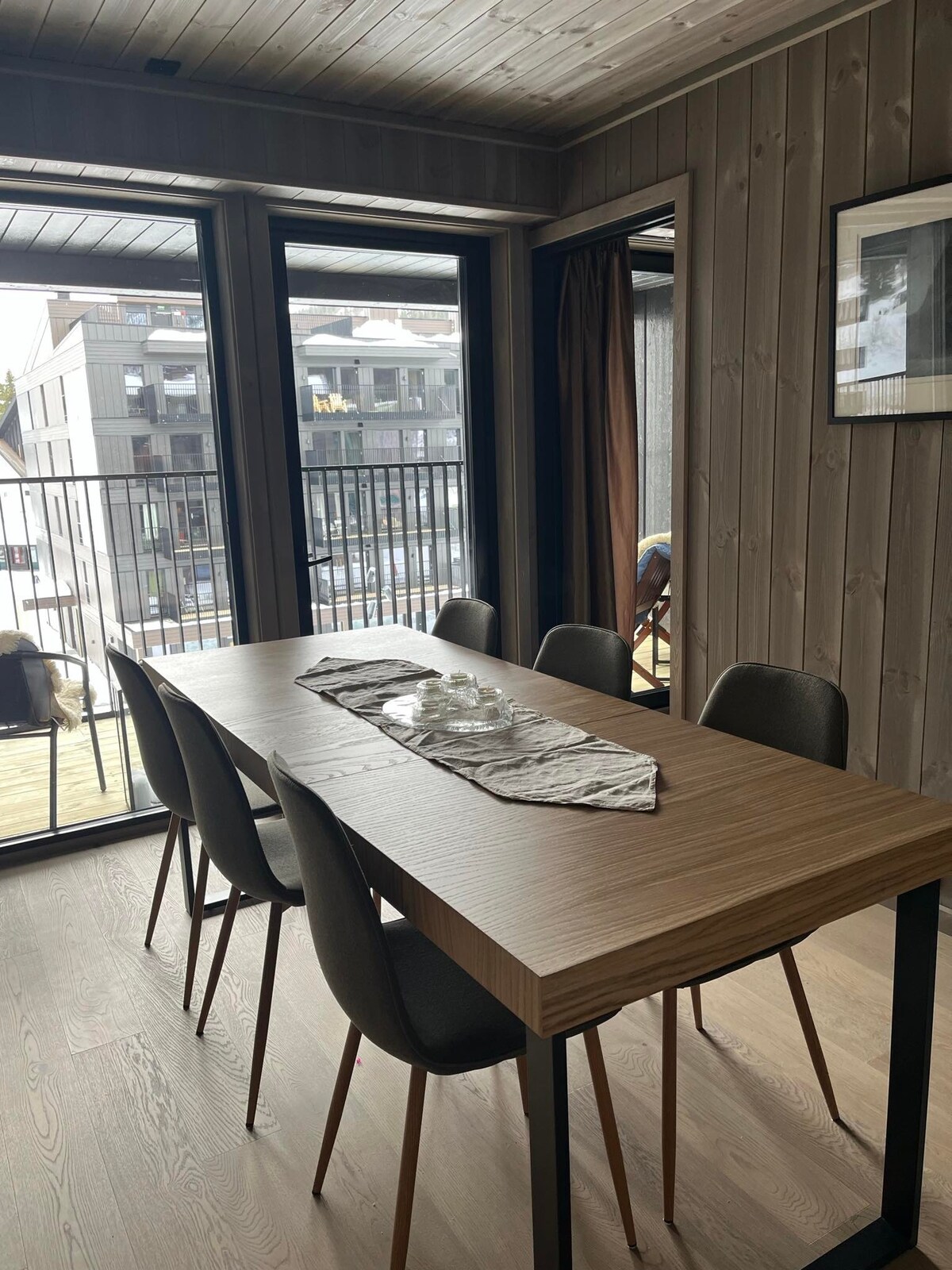 - Rett ved skiheisen. - Gratis P for én bil i garasjeanlegg. - Perfekt for å nyte dager i fjellet. - 6 sengeplasser fordelt på ett stort soverom, og soverom to er en alkove med to doble senger. - Moderne og hyggelig. - Godt utstyrt kjøkken med Vannkoker, airfrier, mikroovn, kaffetrakter, bambusdamper, kjeler, stekepanner og alt utstyr som trengs. - 70 tommers TV med Chromecast. - Brettspill å låne - Balkong med fin utsikt mot Tuv - La bilen stå - alt er i gangavstand - Kun voksne/familie