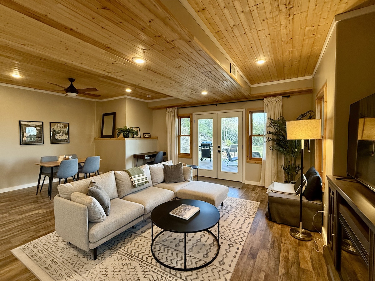 Wood's Edge is a private oasis, nestled in the hills of western North Carolina, less than a 10 minute drive from downtown Hendersonville, and 30 minutes to Asheville. This spacious, living area is the entire downstairs of the home, and is a perfect location to relax. Here you will wake up in tranquility, but can then head to downtown Hendersonville, Asheville, or Brevard to check out the shops, restaurants, breweries or nature trails. We are only 10 miles from Asheville Regional Airport.