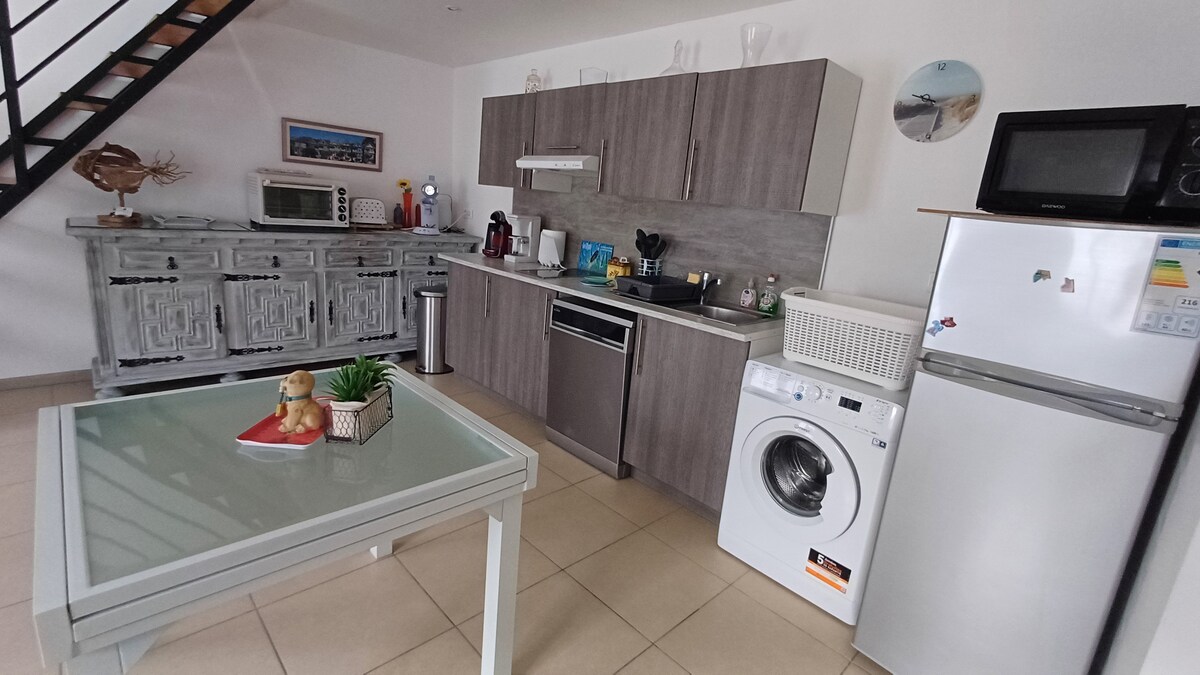 Vi tilbyr deg en sjarmerende T3-leilighet, som ligger i første etasje i villaen. Du vil nyte bassenget og den absolutte roen i den anlagte hagen. Ideell beliggenhet 15 minutter fra Montpellier sentrum og 10 minutter fra strendene, tilgjengelig på sykkel via sykkelstier eller med bil, ligger den i den typiske og livlige landsbyen Pérols, spesielt livlig i høysesongen. Den ligger i nærheten av alle butikker, markeder og trikken.