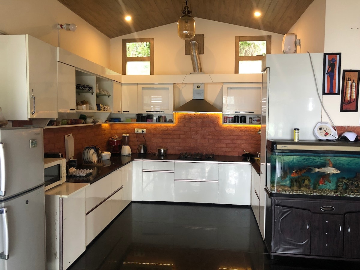 Bungalow vendt mot jungelen Nyt de tiltalende omgivelsene på denne fredelige, rolige og uavhengige eiendommen ved siden av jungelen i Dehradun! Bli oppslukt av naturen, pulserende fugler og sommerfugler som stadig besøker eiendommen, noe som gjør det til et perfekt tilfluktssted for naturelskere. ✓ Romslig med store soverom ✓ Fullt utstyrt kjøkken. ✓ Stue og spisestue ✓ 55tommer smart-TV Trådløst nettverk ✓ med høy hastighet. ✓ bål og grill (på forespørsel) ✓ Badekar 🛁 ✓ Parkering på stedet ✓ Vinduer med utsikt over den beroligende skogen