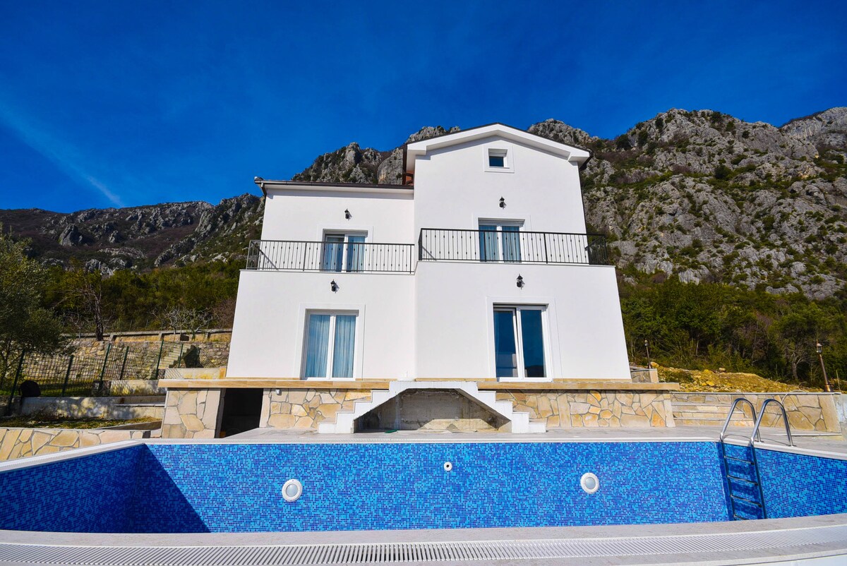 Huset ble bygget spesielt for gjester i 2017. Alle møbler, tilbehør, apparater er helt nye. Kjøkkenet er utstyrt med alt du trenger for å tilberede måltidene og drikkene dine. Stuen tilbyr fantastisk utsikt og tilgang til terrassen og bassenget. I andre etasje er det soverom, som alle har eget bad med toalett. Huset ligger på fjellet og har utrolig utsikt over bukten og havet, og kysten kan nås med bil på bare 10 minutter.