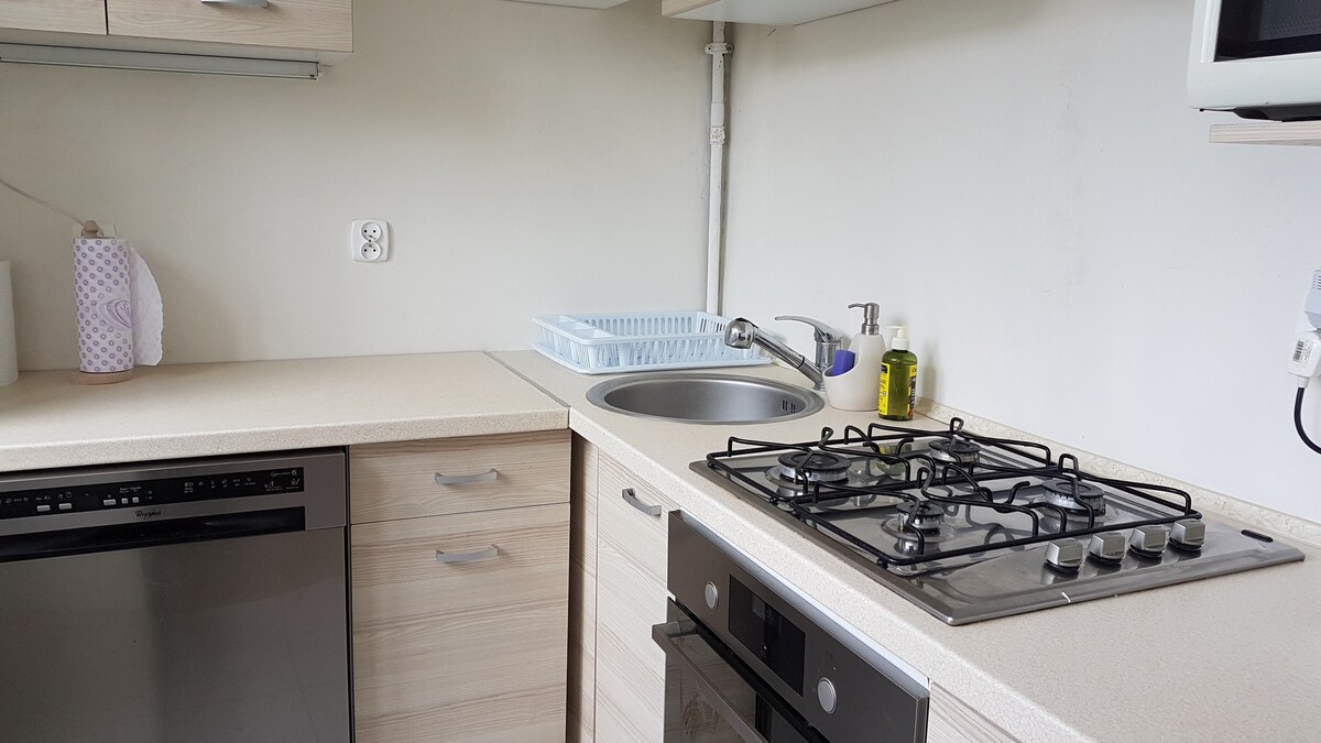 Vår private leilighet har et soverom, stue med åpent kjøkken, balkong og innvendig bad med dusjkar. I huskomplekset er svømmebasseng, badstue, liten treningsrom og vaskerom tilgjengelig gratis. En egen parkeringsplass for biler og sykkelplasser kan også brukes. Den rolige stranden ligger ca. 200 m unna. Turistskatten faktureres separat på forhånd.