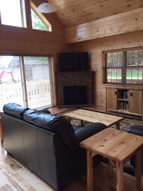 Nyt Adirondacks skjønnhet og komforten i et nøye dekorert hjem som fremmer avslapning. Første etasje har et åpent konsept og inneholder et romslig kjøkken, spiseplass og en innbydende stue med et høyt katedraltak og en peisinnsats. Kos deg og les ved peisen, se på TV eller spill noen brettspill. Når solen går ned, kan du nyte et avslappende bad i et stort boblebad og deretter trekke deg tilbake til et av de fire soverommene ovenpå.