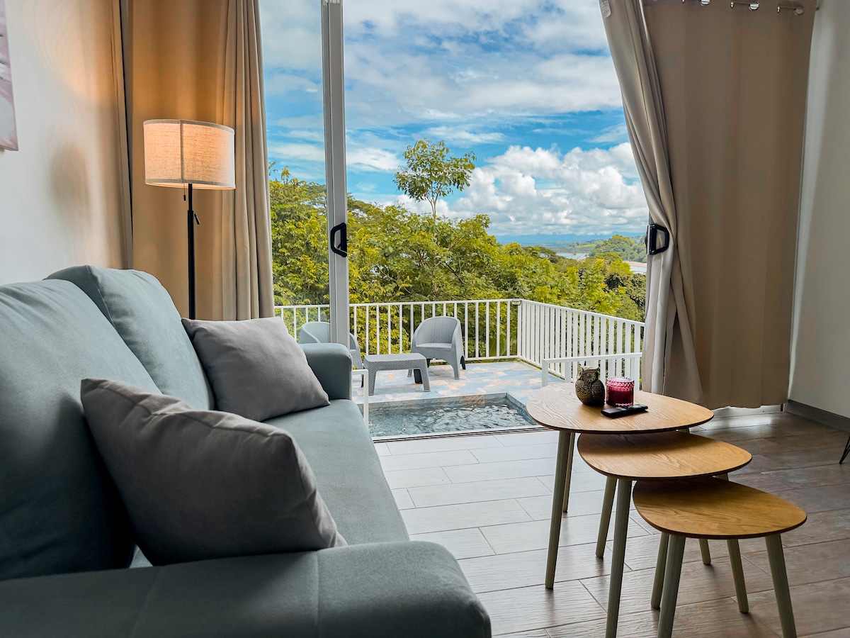 Den beste beliggenheten i hjertet av Jaco. Nyt havutsikt fra den fantastiske kingsize-sengen din i et studio bygget i 2024, på stranden, ett kvartal unna hovedgaten i Jaco. Gå til overalt! Denne komplette private romantiske studioleiligheten i 8. etasje har egen inngangsdør, egen intim balkong med utsikt over havet, fjell og byen. Sikker port, to bassenger, treningsrom, felles arbeidsområde, grillområde og en utrolig terrasse i 13. etasje med 360 graders utsikt. Pura vida!
