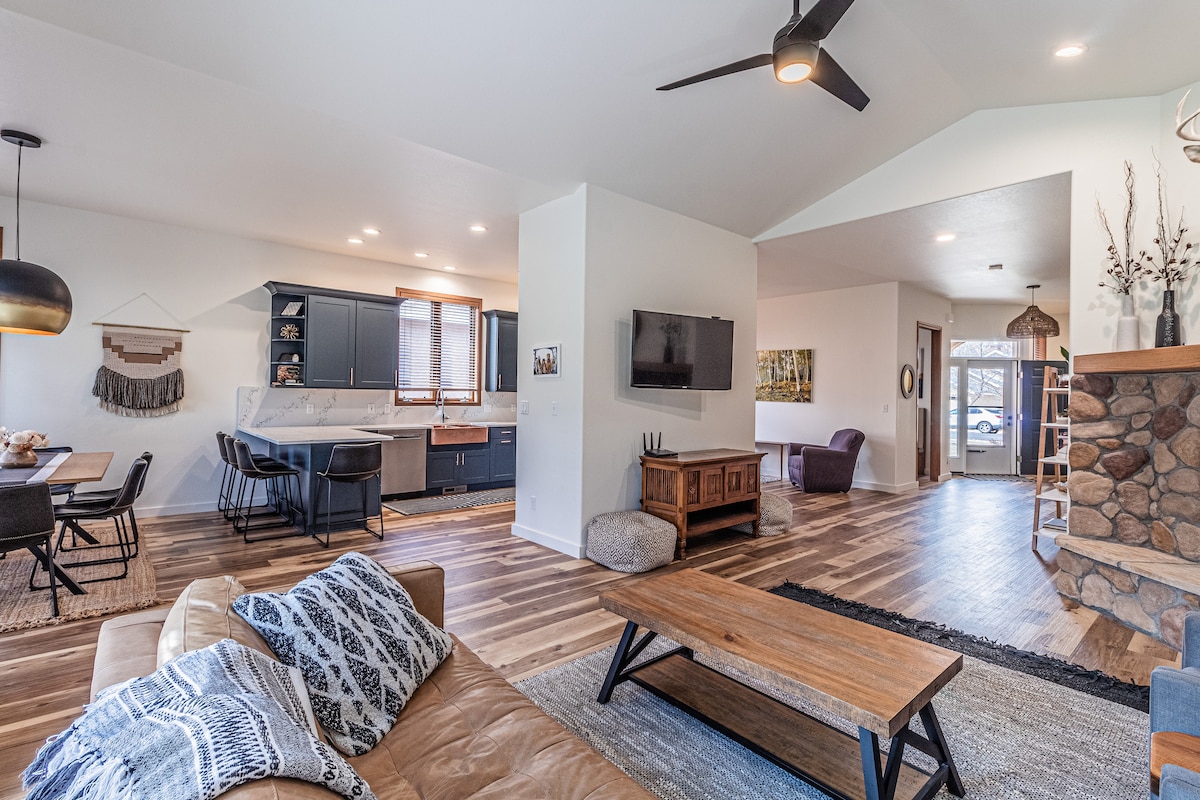 NY 650 kvm tilknyttet* svigerforeldre leilighet. Tilbyr en privat temperaturkontrollert garasje for én bil og inngang med Hermosa Creek-fasade. Stor lagringsplass for alt sommer- eller vinterutstyret ditt! Fullt utstyrt kjøkken i full størrelse, W/D, KING-seng og en liten futon i full størrelse. To smart-TV-er, rikelig med arbeidsplass og en uteplass med grill og sitteplasser. Ligger 15 minutter fra Purgatory Resort og 10 miles fra Durango. Merk* Dette er knyttet til familiehjemmet vårt, hvor vi bor på heltid. Dette er kanskje ikke noe for deg hvis du trenger total stillhet.