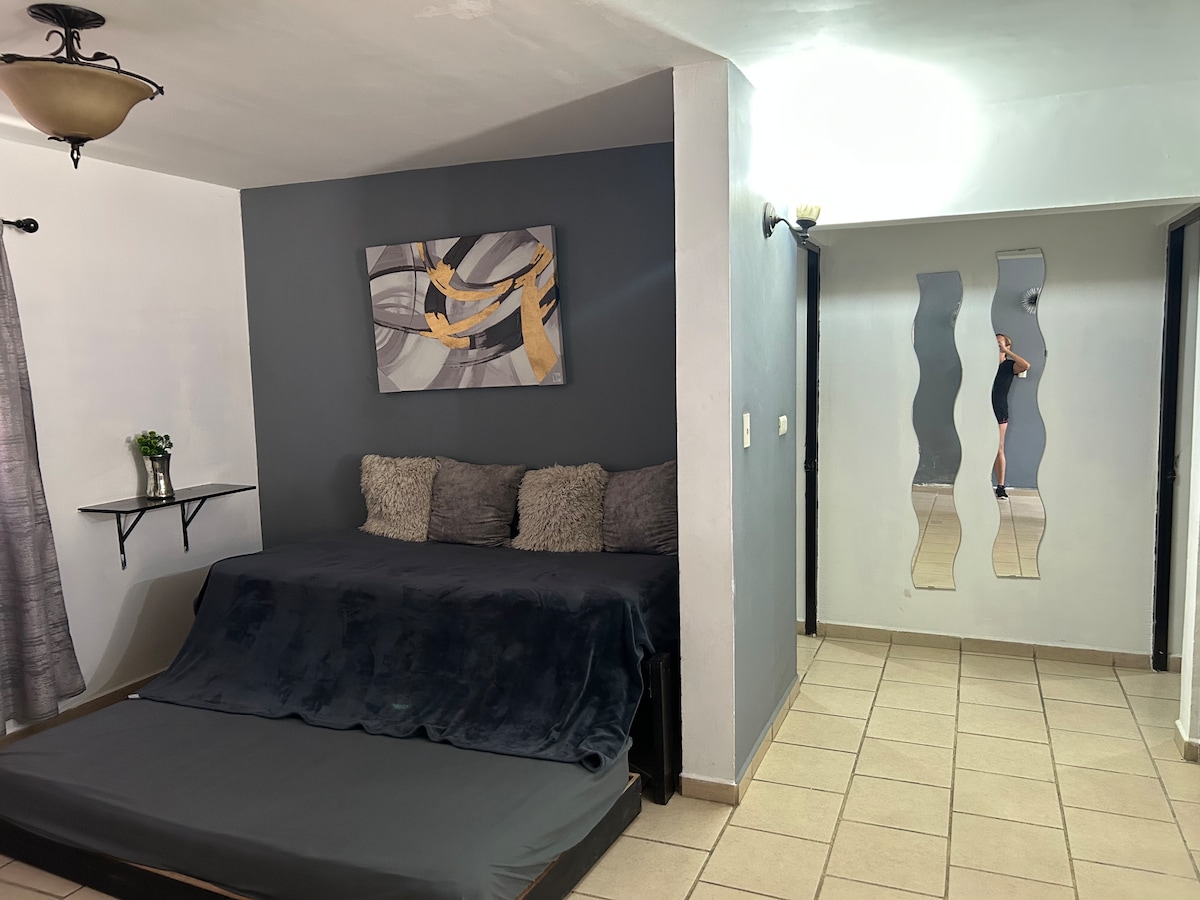Nyt enkelheten i dette rolige og sentrale overnattingsstedet. 3 minutter fra det amerikanske konsulatet. Oxxo, caffenio, apotek og annet ligger bare noen få skritt unna. Vi streber etter å gjøre oppholdet ditt så komfortabelt som mulig, og vi vil være tilgjengelige for å hjelpe deg med alt du trenger. Vi håper å kunne ønske deg velkommen snart!