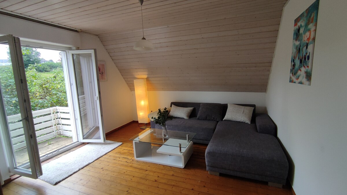 Moderne, lys leilighet med balkong og utsikt over hagen – ideell for forretningsreisende. Rask forbindelse (bare 2,8 km til A30), trådløst nettverk, TV, arbeidsplass. Rett over gaten: bakeri, Aldi, Edeka, snackbar og frisør. Fullt utstyrt kjøkken med oppvaskmaskin og kaffemaskin med sil. Bad med vaskemaskin. Dobbeltseng og sovesofa for opptil tre personer pluss spedbarn (babyseng tilgjengelig på forespørsel og 20 euro).