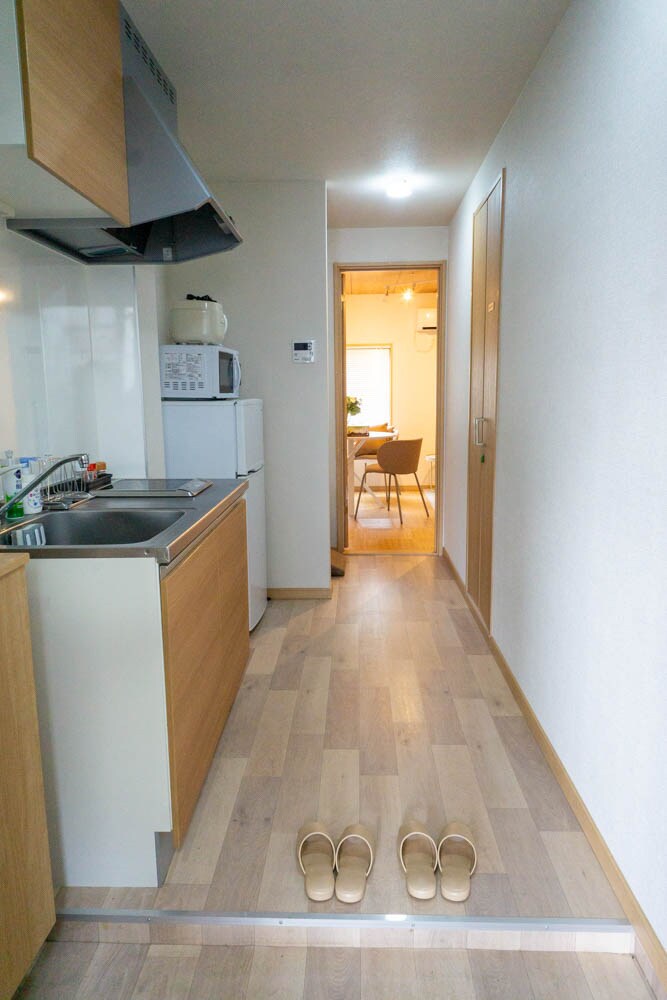 Dette er en feriebolig i leilighetsstil på 41 kvm med ett soverom, stue og kjøkken, designet helt fra bunnen av en interiørarkitekt. Det er flere enheter i samme bygning. Det er syv minutters gange til Nankai og Osaka Metro Tengachaya Station. Derfra er det bare to stopp (fem minutter) med Nankai-linjen til Namba Station, og en direkte 35-minutters tur til Kansai internasjonale lufthavn uten overganger. ◆Funksjoner: Stressfritt innsjekkingssystem uten vert Japansk, engelsk og kinesisk språkstøtte Trådløst nettverk med høy hastighet tilgjengelig