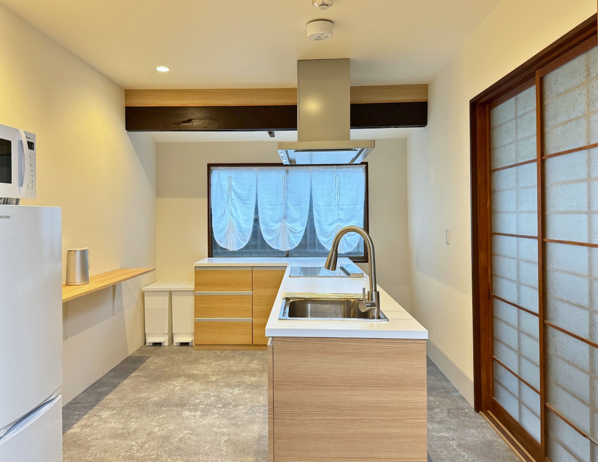 Nybygd eksklusiv B&B. 2LDK ~ Maksimalt 6 personer, hele husarealet er ca. 75㎡ Fem minutters gange fra Keihan Railway «Shichijo» stasjon. Ti minutter med taxi fra Kyoto St. ① JR – 1 time 25 minutter med HARUKA > Kyoto Station. ② JR-HARUKA 1 time 25 minutter > Kyoto Station. ③ Ta «City Bus 206» fra Kyoto Station, gå av på «Shichijo Keihan-mae» etter tre stopp > gå i ca. fem minutter. Utstyrt med klimaanlegg, fullt kjøkken, gulvvarme, trommelvaskemaskiner og gratis Disney+ og Netflix.
