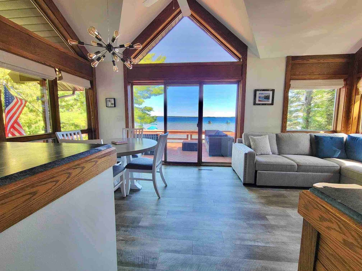 Nyt denne uberørte, nyinnredede hytta på 1700 kvadratfot, komplett med fasiliteter, trådløst nettverk, fullt kjøkken, romslig stue, fire store soverom, vaskemaskin/tørketrommel og rikelig med parkering for bil, båter/vannfartøy og snøscooter! Vi ligger i hjertet av Higgins Lake, i gangavstand til Sam-O-Set park med båttilgang og badeplasser. Det er en flott beliggenhet for dagsturer til Traverse City, Mackinaw, vingårder og naturskjønne golfbaner.