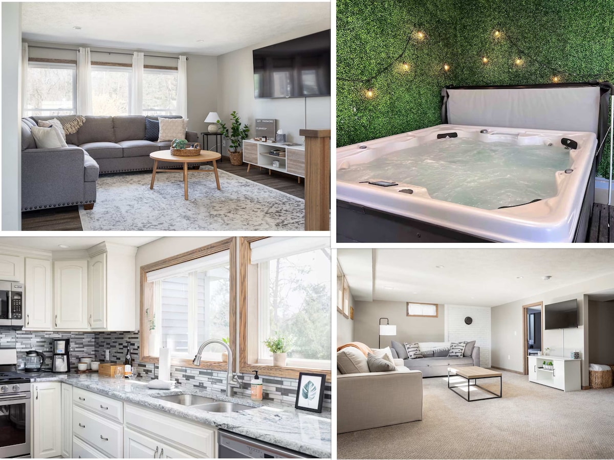 Hjemmet vårt ved innsjøen er det perfekte stedet for ferien din i det nordlige Michigan! Vårt fullt utstyrte, romslige hjem har en sauna og et boblebad hvor du kan slappe av! Flott badeplass for hele familien. Enkel tilgang til innsjøbredden, Sleeping Bear Dunes, M22, flere skianlegg, åtte golfbaner og mange innsjøer og elver. Funksjoner: • vidstrakt terrasse med utsikt over innsjøen • Badstue • badestamp utendørs for seks personer • Lader for elbiler • Generac-generator • bålplass og sitteplasser utendørs • kajakker og plenspill utendørs