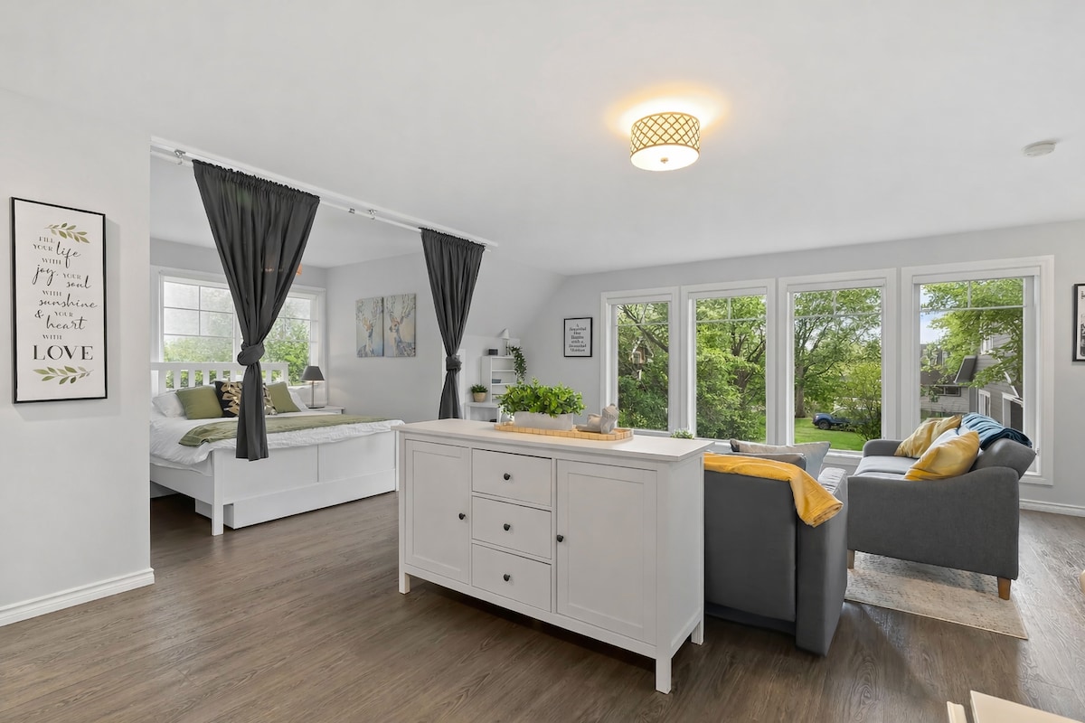 Nyt en stilfull opplevelse i dette lyse og åpne vognhuset som ligger i en svært ettertraktet del av byen. Nær restauranter, shopping, sentrum, Saddledome, Mount Royal University og mye mer! Den arkitektdesignede suiten er unik og full av karakter og naturlig lys. Slapp av med en kopp kaffe eller et glass vin på den overbygde, private balkongen, eller ta en kort spasertur til Marda Loop, en av Calgarys fremste spisesteder! Maksimalt belegg er to voksne og ett barn under 12 år.