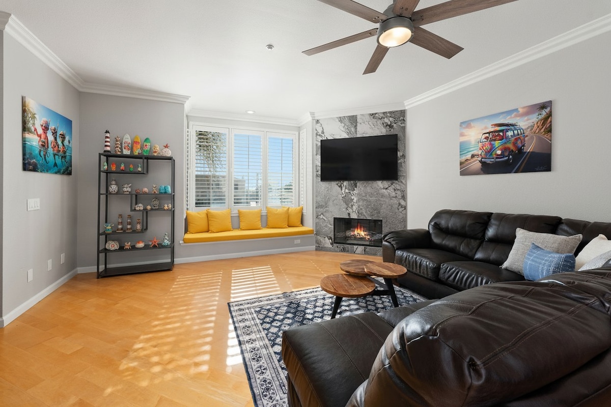 Lyst • Gåavstand • Sjarmerende håndverkerhytte med to soverom i San Diegos University Heights-nabolag, perfekt plassert mellom Hillcrest og North Park. Takvinduer og store vinduer fyller hjemmet med naturlig lys, mens det gjennomtenkte, oppdaterte interiøret tilbyr komfort og stil. Nyt en privat, inngjerdet hage med uteservering, og gå til restauranter, kaféer og en dagligvarebutikk bare to kvartaler unna. Perfekt for par, små grupper eller forretningsreisende som utforsker San Diego.