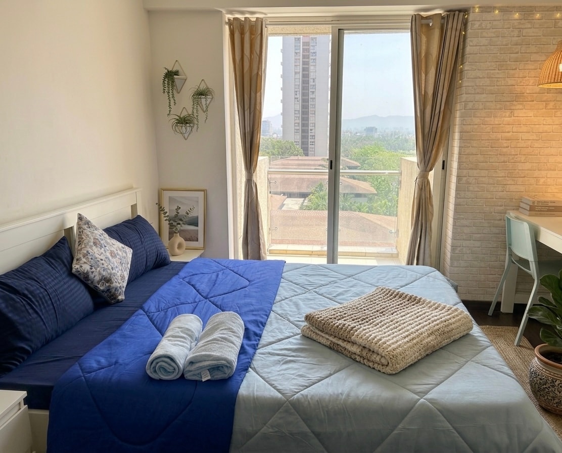 Bare 3,5 km fra Balewadi High Street. 800 meter til Mumbai-Bangalore Highway. Tenk deg å starte dagen med de fredelige lydene fra naturen – påfuglenes rop, raslingen av blader og en fantastisk utsikt over Baner Hills og Pashan Hill Lake, alt fra sengen din. Velkommen til Casa Symphony, en romslig studioleilighet som føles som et hjem hjemmefra. Dette er ikke bare et sted å bo, det er et sted designet for å hjelpe deg med å slappe av, lade opp og bli inspirert.