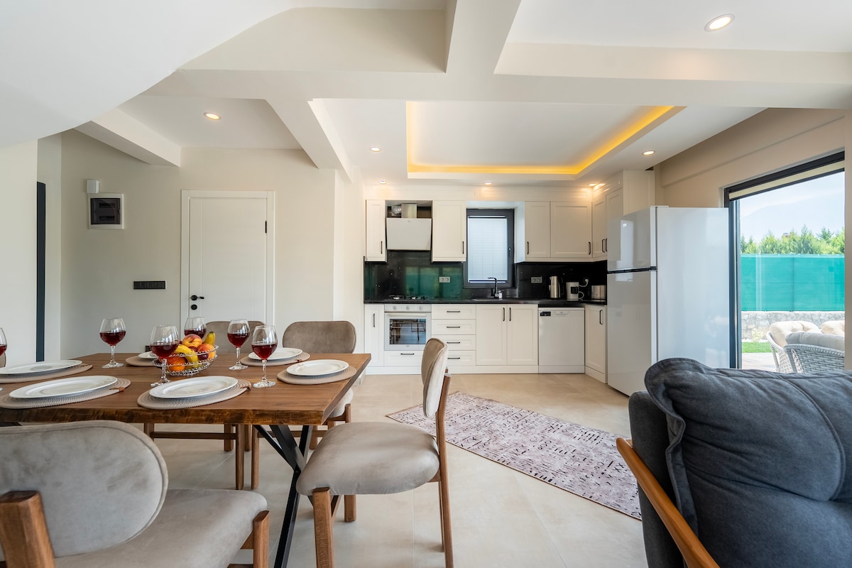 Villa Karmele er én av seks Green Heaven-villaer, som ligger ved foten av det fantastiske Babadag-fjellet og er omgitt av beskyttet nasjonalparkområde. Dette fredelige tilfluktsstedet tilbyr et privat basseng, hage og romslige stuer med moderne bekvemmeligheter. Bare en kort kjøretur fra den verdensberømte Blå lagunen i Ölüdeniz, livlige Hisarönü og historiske Fethiye, er det ideelt for å slappe av i naturen mens du holder deg nær strender, fjell, tyrkisk kultur og feriemoro. ---