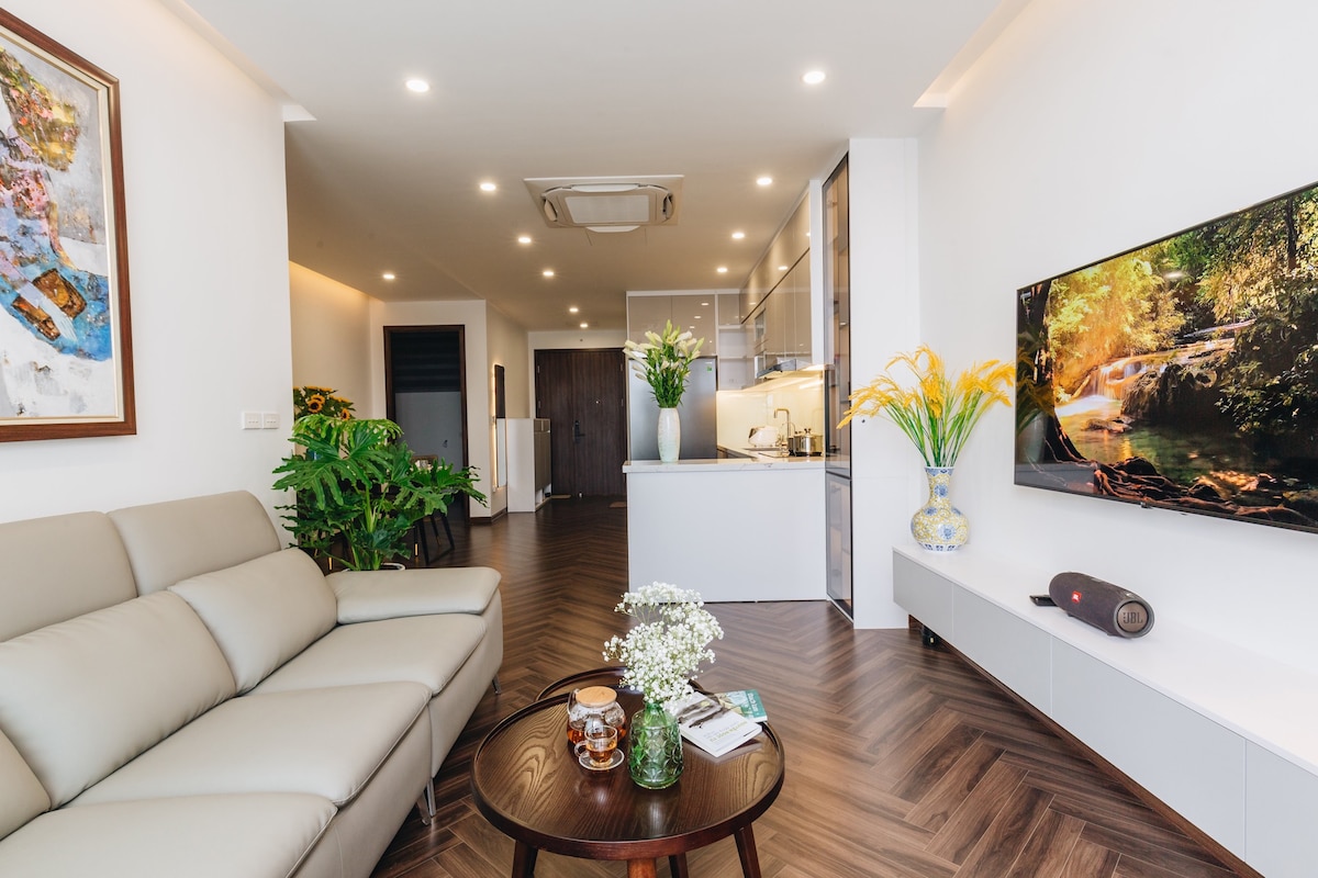 Leiligheten i nærheten av Tay Ho er designet som et 5-stjerners hotell, panoramautsikt på to sider med utsikt over den nasjonale motorveien. Plass (92 kvm) 1. etasje: sofa, spisebord, TV, kjøkken, bad med dusj, trapper. Andre etasje: soverom, bad med stor jacuzzi. Bygningen har en betalt parkeringsplass, et treningsstudio og et vakkert basseng. Merk at disse kostnadene ikke er inkludert i prisen for leiligheten. Du kan bruke mot ekstra kostnad basert på etterspørsel 📍 Beliggenhet: tre minutter til Lotte Mall West Lake, fem minutter til West Lake, 20 minutter til Noi Bai lufthavn.