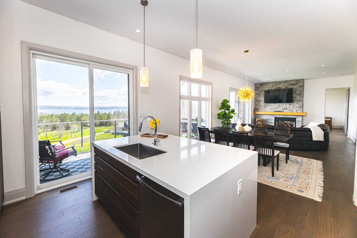Dette året-rundt-hjemmet gir deg majestetisk utsikt over Georgian Bay fra alle hovedområder og har plass til opptil 14 gjester. Det er den ideelle basen for å utforske Bruce-halvøya. Nyt turstier, golf, båtturer, fiske, nasjonalparker, Grotto og strender. Etter en dag med eventyr kan du slappe av ved bålet eller se en film i kinoen. Du har to fullt utstyrte kjøkken til å tilberede festmåltidet ditt. Det er det perfekte feriestedet for grupper som ønsker å slappe av og skape minner sammen!