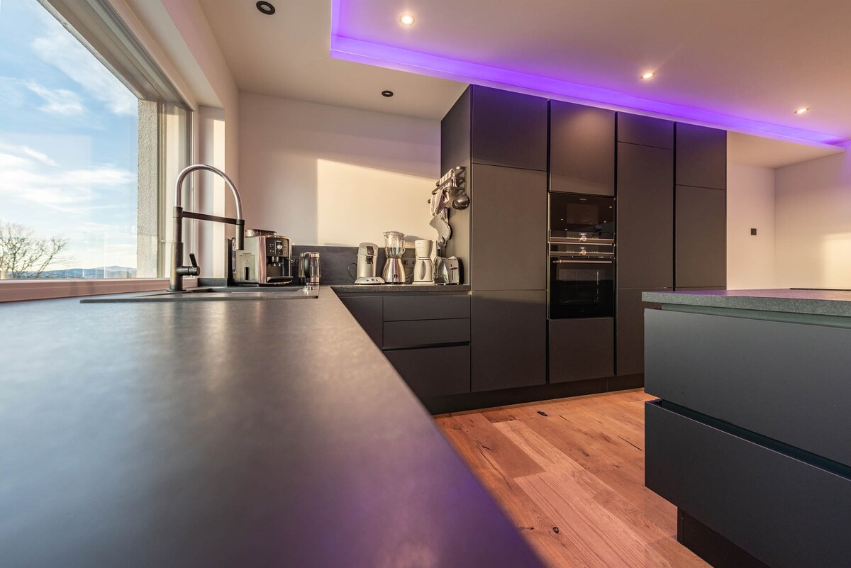 Stilig restaurert gammel låve på en fantastisk avsidesliggende beliggenhet, som tilbyr 120 kvm plass med panoramautsikten over landskapet, et galleri på 50 kvm med store vinduer, en infrarød hytte, dusjkabinett, badekar, luksuriøst designerkjøkken, terrazzo-marmorgulv med elektrisk gulvvarme, en historisk flislagt komfyr fra 1700 og en inngjerdet hage for så mange hunder du vil. En drøm bare 15 min fra Passau, 3 min fra motorveien og 10 min fra Donau. Kan bestilles fra november 2025