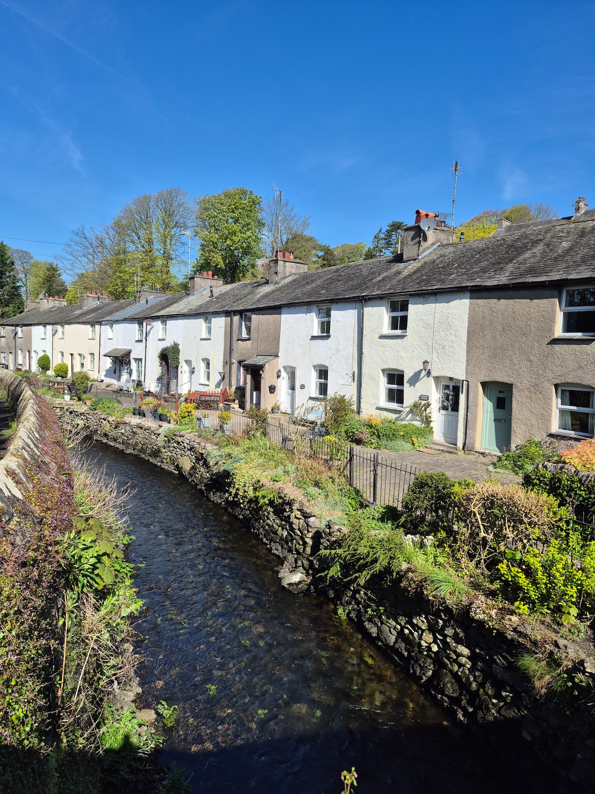 Peaceful Riverside cottage situated in the beautiful Lake District . A 5 minute drive to Cartmel with its Michelin starred restaurants,L’Enclume & Rogans. Famous race course.30 minute drive to Windermere.5 minute walk to Holker Hall with its park,cafe & many events,e.g. Chilli festival or Winter Market. Cosy home from home with its wood burner or sip a glass of wine next to the babbling river. A short stroll to lovely pubs & restaurant. Take a train to Arnside; station 5 minute walk away.